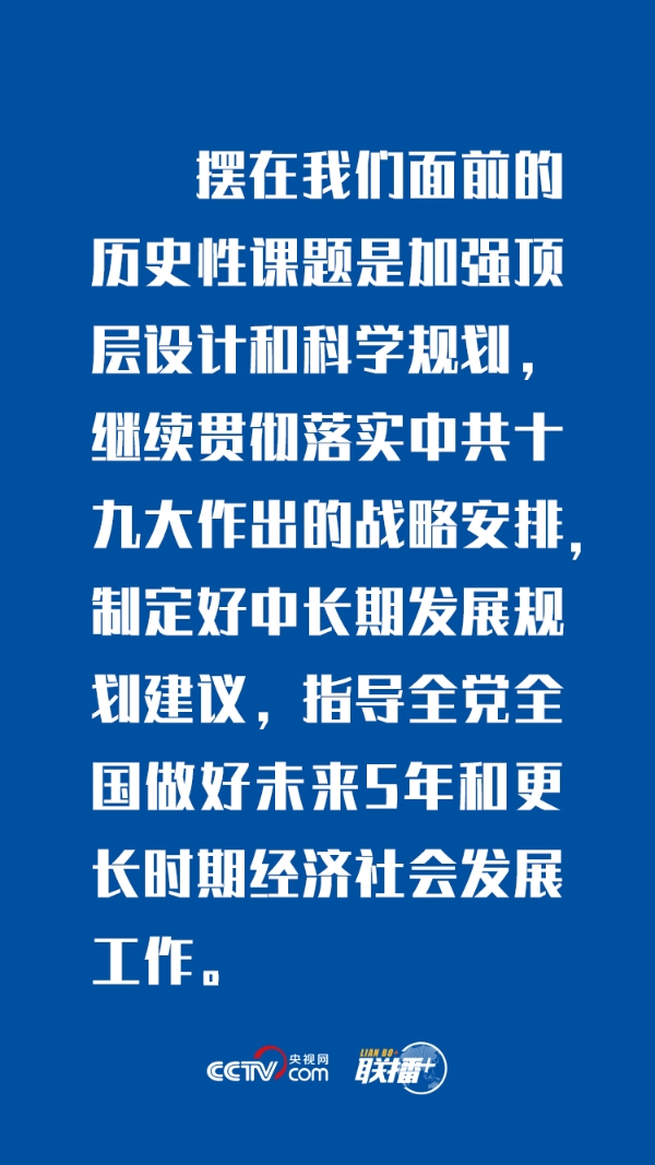一個(gè)重大任務(wù) 習(xí)近平總書記首先介紹了中共中央關(guān)于制定國(guó)民經(jīng)濟(jì)和社會(huì)發(fā)展第十四個(gè)五年規(guī)劃和2035年遠(yuǎn)景目標(biāo)的建議的考慮和文件起草有關(guān)情況。他是這樣說的: 中共中央經(jīng)過認(rèn)真研究,決定中共十九屆五中全會(huì)的主題為研究關(guān)于制定國(guó)民經(jīng)濟(jì)和社會(huì)發(fā)展第十四個(gè)五年規(guī)劃和2035年遠(yuǎn)景目標(biāo)的建議。 這是貫徹落實(shí)中共十九大戰(zhàn)略安排的重大任務(wù),是統(tǒng)籌中華民族偉大復(fù)興戰(zhàn)略全局和世界百年未有之大變局的現(xiàn)實(shí)需要,是發(fā)揮中國(guó)特色社會(huì)主義制度優(yōu)勢(shì)的重要途徑。 制定好“十四五”規(guī)劃建議,將為編制規(guī)劃綱要提供依據(jù),向社會(huì)傳遞未來5年我國(guó)發(fā)展的主要目標(biāo)、優(yōu)先領(lǐng)域、重點(diǎn)任務(wù),有利于引導(dǎo)全社會(huì)匯聚共識(shí)、凝聚力量,推動(dòng)我國(guó)經(jīng)濟(jì)社會(huì)發(fā)展不斷取得新的更大成就。 五大“關(guān)系” 習(xí)近平總書記強(qiáng)調(diào),制定好“十四五”規(guī)劃建議,必須處理好幾大關(guān)系。他進(jìn)一步解釋: 一是處理好繼承和創(chuàng)新的關(guān)系,做好“兩個(gè)一百年”奮斗目標(biāo)有機(jī)銜接。 二是處理好政府和市場(chǎng)的關(guān)系,更好發(fā)揮我國(guó)制度優(yōu)勢(shì)。 三是處理好開放和自主的關(guān)系,更好統(tǒng)籌國(guó)內(nèi)國(guó)際兩個(gè)大局。 四是處理好發(fā)展和安全的關(guān)系。 五是處理好戰(zhàn)略和戰(zhàn)術(shù)的關(guān)系,制定出一個(gè)高瞻遠(yuǎn)矚、務(wù)實(shí)管用的規(guī)劃建議。 三個(gè)“要求” 習(xí)近平總書記希望大家繼續(xù)思考研究,繼續(xù)提供真知灼見。他說: 要深刻認(rèn)識(shí)新發(fā)展階段,深刻認(rèn)識(shí)新發(fā)展階段的新特征新要求,積極主動(dòng)迎接挑戰(zhàn),發(fā)揚(yáng)斗爭(zhēng)精神,努力化危為機(jī),解決一系列影響高質(zhì)量發(fā)展的結(jié)構(gòu)性、周期性、體制性問題,培育強(qiáng)勁持續(xù)的發(fā)展新動(dòng)能,不斷實(shí)現(xiàn)人民對(duì)美好生活的向往。 要全面貫徹新發(fā)展理念,堅(jiān)持統(tǒng)籌推進(jìn)“五位一體”總體布局、協(xié)調(diào)推進(jìn)“四個(gè)全面”戰(zhàn)略布局,加強(qiáng)頂層設(shè)計(jì)和戰(zhàn)略布局,增強(qiáng)發(fā)展的整體性、協(xié)同性。 要著力構(gòu)建新發(fā)展格局,根據(jù)我國(guó)發(fā)展環(huán)境、發(fā)展階段、發(fā)展條件的深刻變化,堅(jiān)持?jǐn)U大內(nèi)需這個(gè)戰(zhàn)略基點(diǎn),更好吸引全球資源要素,形成參與國(guó)際經(jīng)濟(jì)合作和競(jìng)爭(zhēng)新優(yōu)勢(shì)。 一個(gè)“希望” “中共十九屆五中全會(huì)審議通過‘十四五’規(guī)劃建議后,國(guó)務(wù)院還要根據(jù)《建議》制定《國(guó)民經(jīng)濟(jì)和社會(huì)發(fā)展第十四個(gè)五年規(guī)劃綱要草案》?!弊剷?huì)上,習(xí)近平總書記還提出了一個(gè)“希望”: 希望各民主黨派、工商聯(lián)和無黨派人士堅(jiān)持問題導(dǎo)向,繼續(xù)深入開展調(diào)查研究,摸清真實(shí)情況,科學(xué)研究論證,反映社會(huì)訴求,為制定好“十四五”規(guī)劃貢獻(xiàn)出寶貴智慧。 |