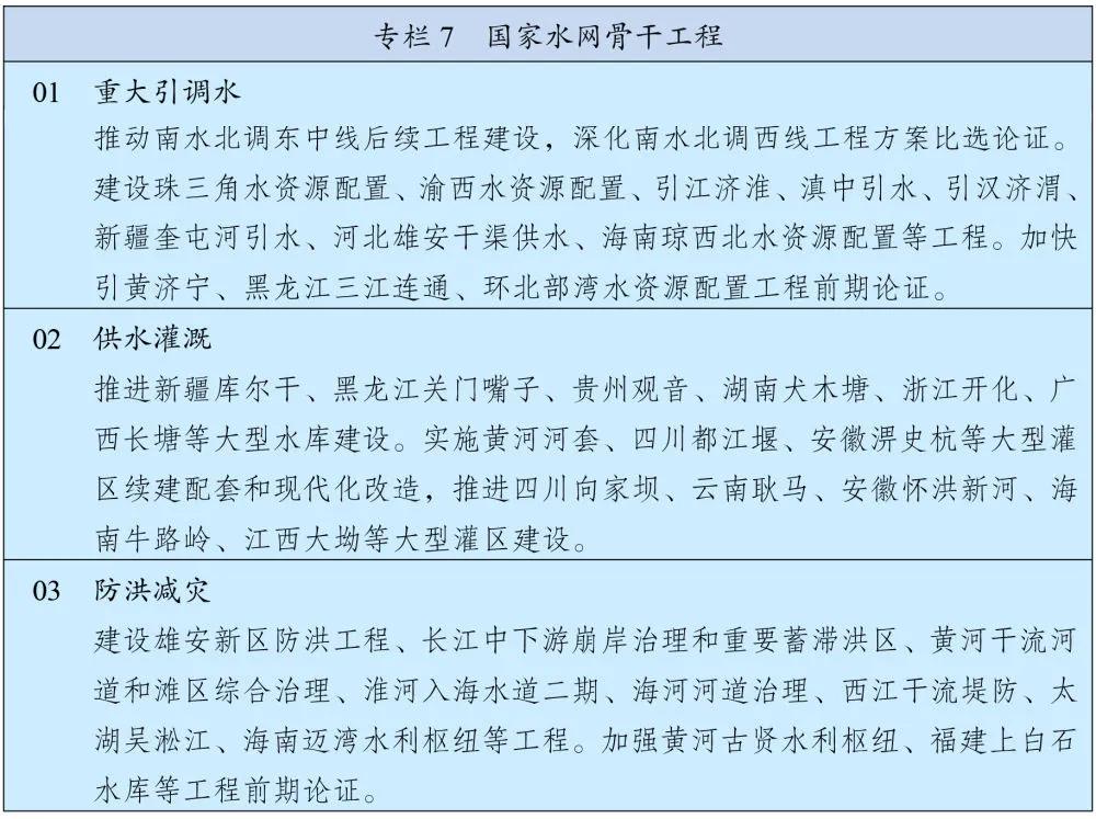 國家水網(wǎng)骨干工程 加強跨行政區(qū)河流水系治理保護和骨干工程建設(shè),強化大中小微水利設(shè)施協(xié)調(diào)配套。 加強重點水源和城市應(yīng)急備用水源工程建設(shè)。 實施防洪提升工程,全面推進堤防和蓄滯洪區(qū)建設(shè)。