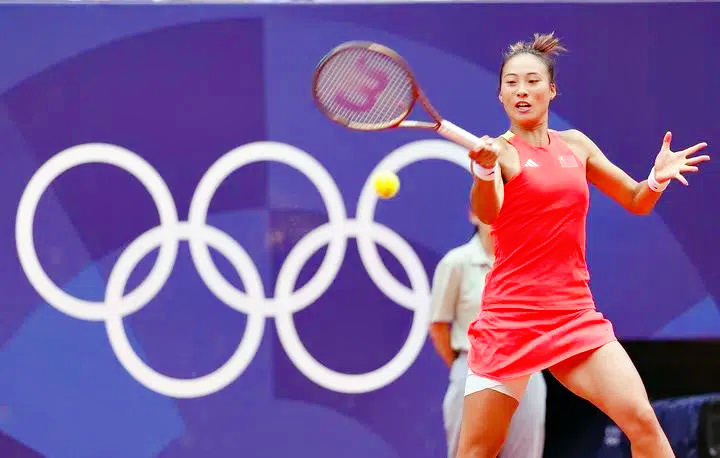 奧運(yùn)網(wǎng)球女單決賽上的鄭欽文(圖源:新華社)