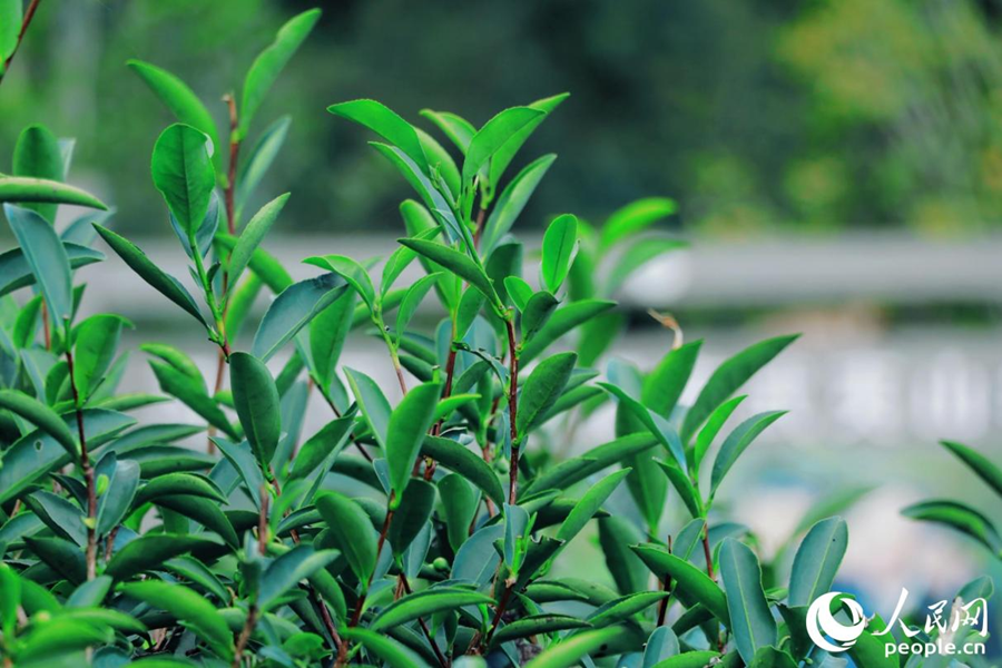 武夷山市星村鎮(zhèn)燕子窠生態(tài)茶園內(nèi),茶芽擠滿茶樹梢頭。人民網(wǎng) 李唯一攝