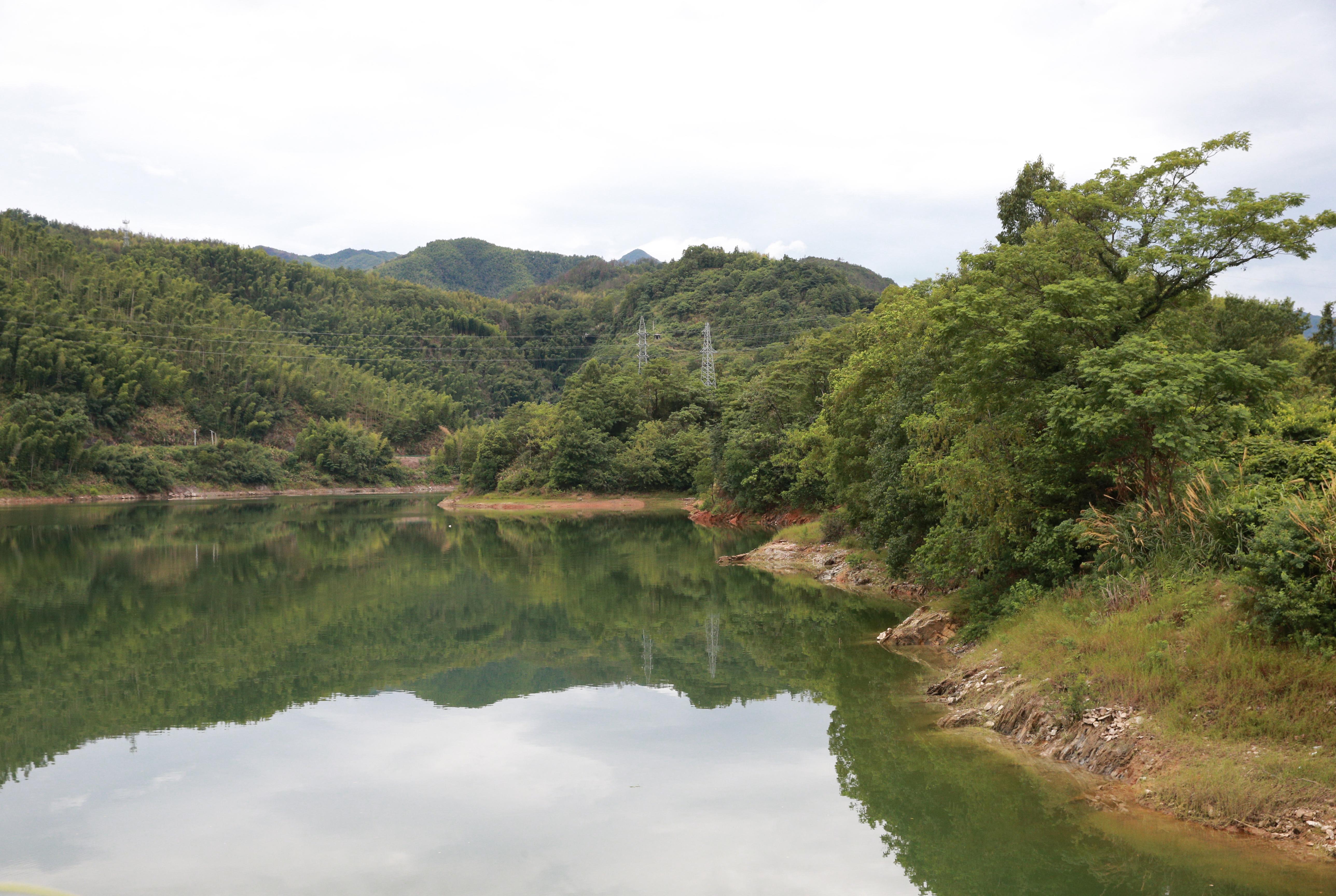 這是陳漢鄉(xiāng)的釣魚臺水庫,水庫中央樹林處為“陳漢溝會師”舊址(7月22日攝)。新華社記者 肖磊濤 攝