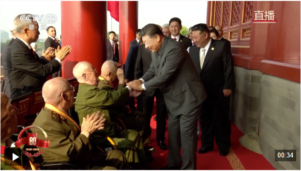致敬英雄!習(xí)近平與天安門城樓觀禮席的抗戰(zhàn)老兵親切握手