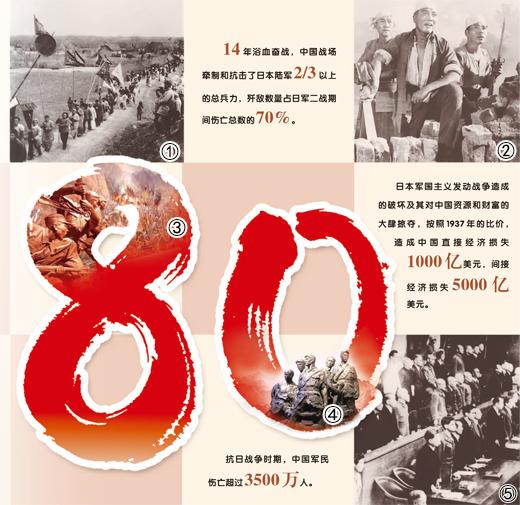 作為東方主戰(zhàn)場(chǎng),中國(guó)付出了傷亡3500多萬(wàn)人的民族犧牲,抗擊了日本軍國(guó)主義主要兵力,對(duì)日本侵略者的徹底覆滅起到了決定性作用。正如毛澤東同志所指出的,這是"戰(zhàn)爭(zhēng)史上的奇觀,中華民族的壯舉,驚天動(dòng)地的偉業(yè)"。