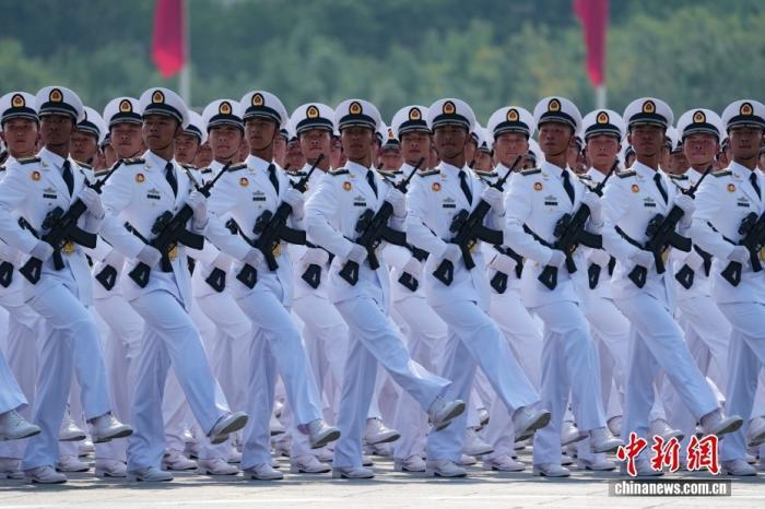 海軍方隊(duì)接受檢閱。中新社記者 張煒 攝