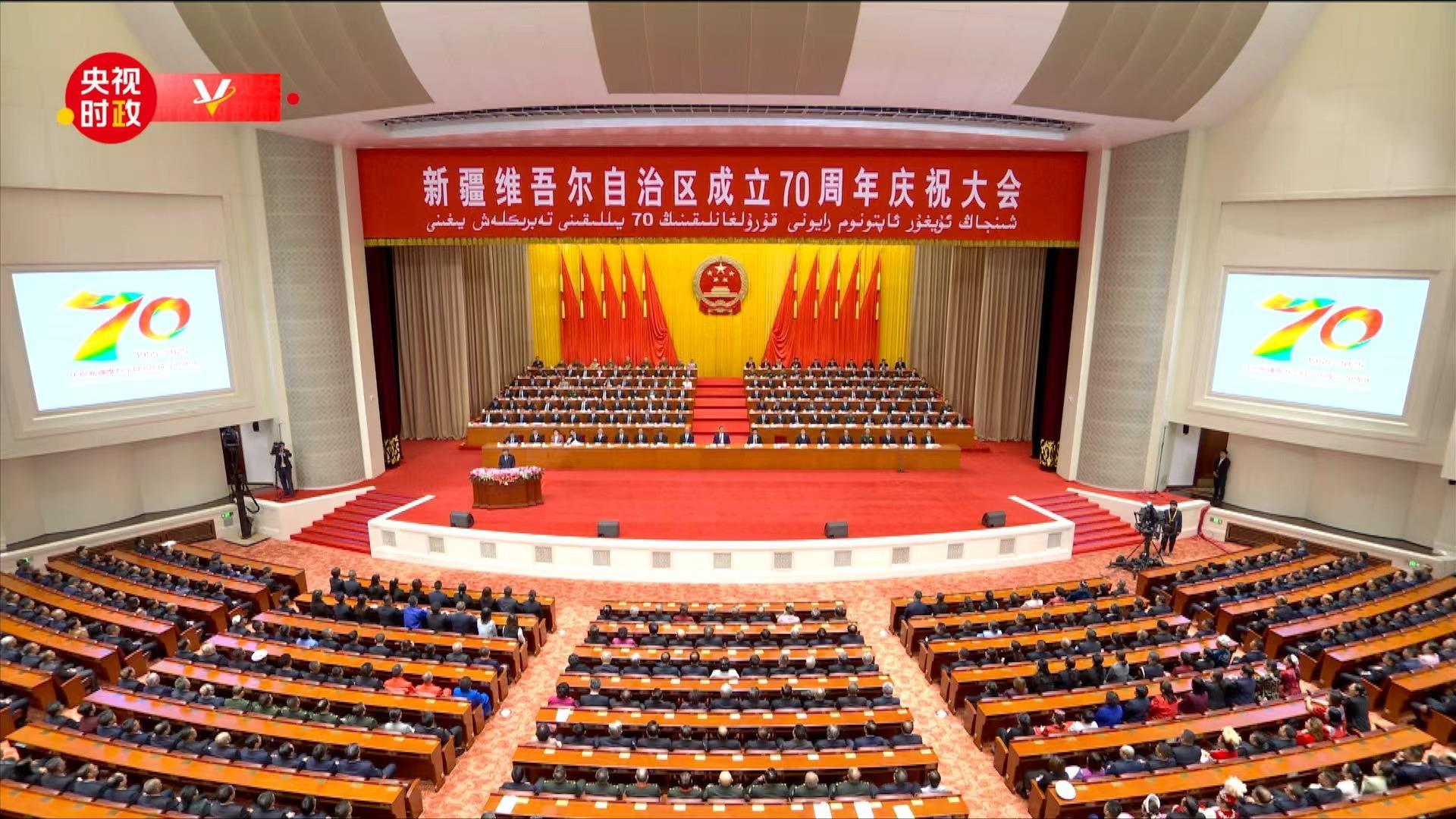 25日上午,新疆維吾爾自治區(qū)成立70周年慶祝大會在新疆人民會堂隆重舉行。中共中央總書記、國家主席、中央軍委主席習近平出席慶祝大會。