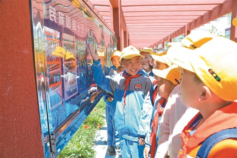 拉薩市墨竹工卡縣南京實驗小學(xué)學(xué)生參觀"民族團結(jié)教育主題公園"主題苑。記者 唐斌 通訊員 洛克 攝