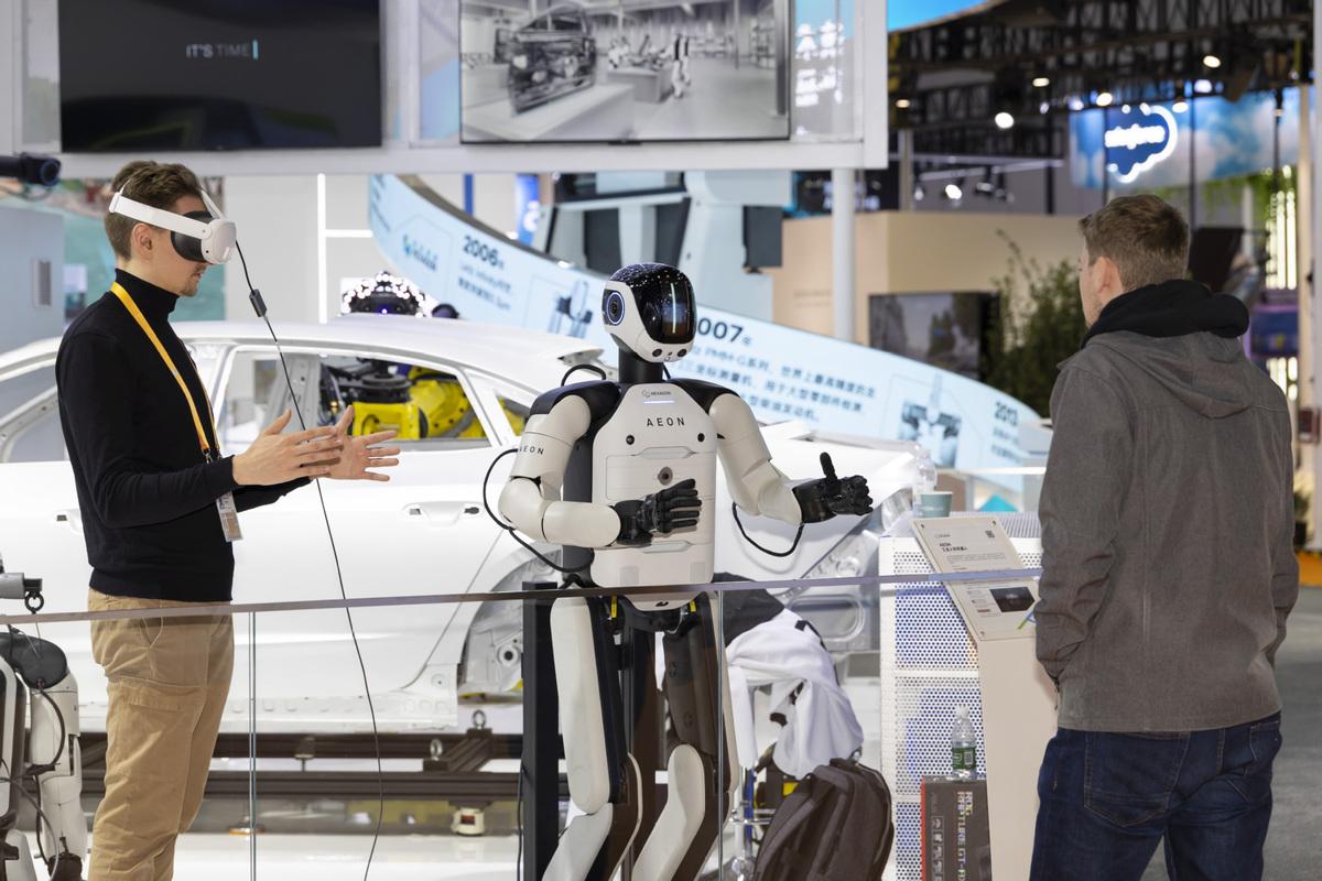11月4日,工作人員在第八屆進博會技術(shù)裝備展區(qū)調(diào)試機器人。(圖片來源:新華社)