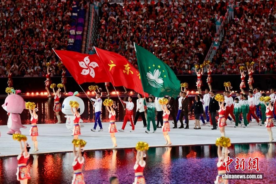 11月9日晚,第十五屆全國(guó)運(yùn)動(dòng)會(huì)開幕式在廣東奧林匹克體育中心舉行。圖為東道主廣東、香港、澳門體育代表團(tuán)同時(shí)入場(chǎng)。中新社記者 富田 攝