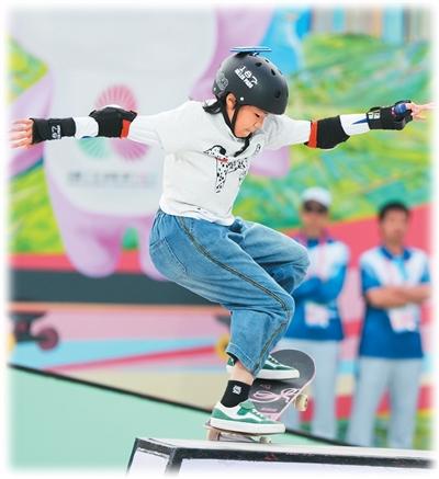 上海隊選手徐琳瀧在滑板比賽中。 新華社記者 劉 坤攝