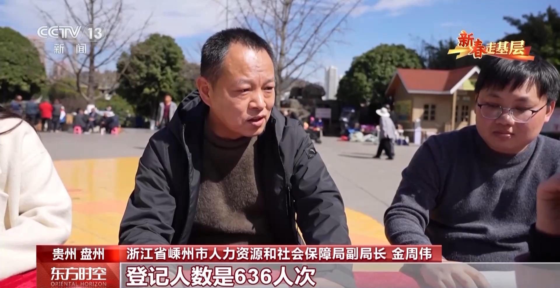 總臺央視記者 唐蕾:這里是貴州盤州市春風(fēng)行動招聘會現(xiàn)場,我們看到前來咨詢的勞動者非常多,氣氛非?;鸨瑏碜哉憬?、江蘇、貴州等地的65家企業(yè)帶來了3000多個(gè)崗位。