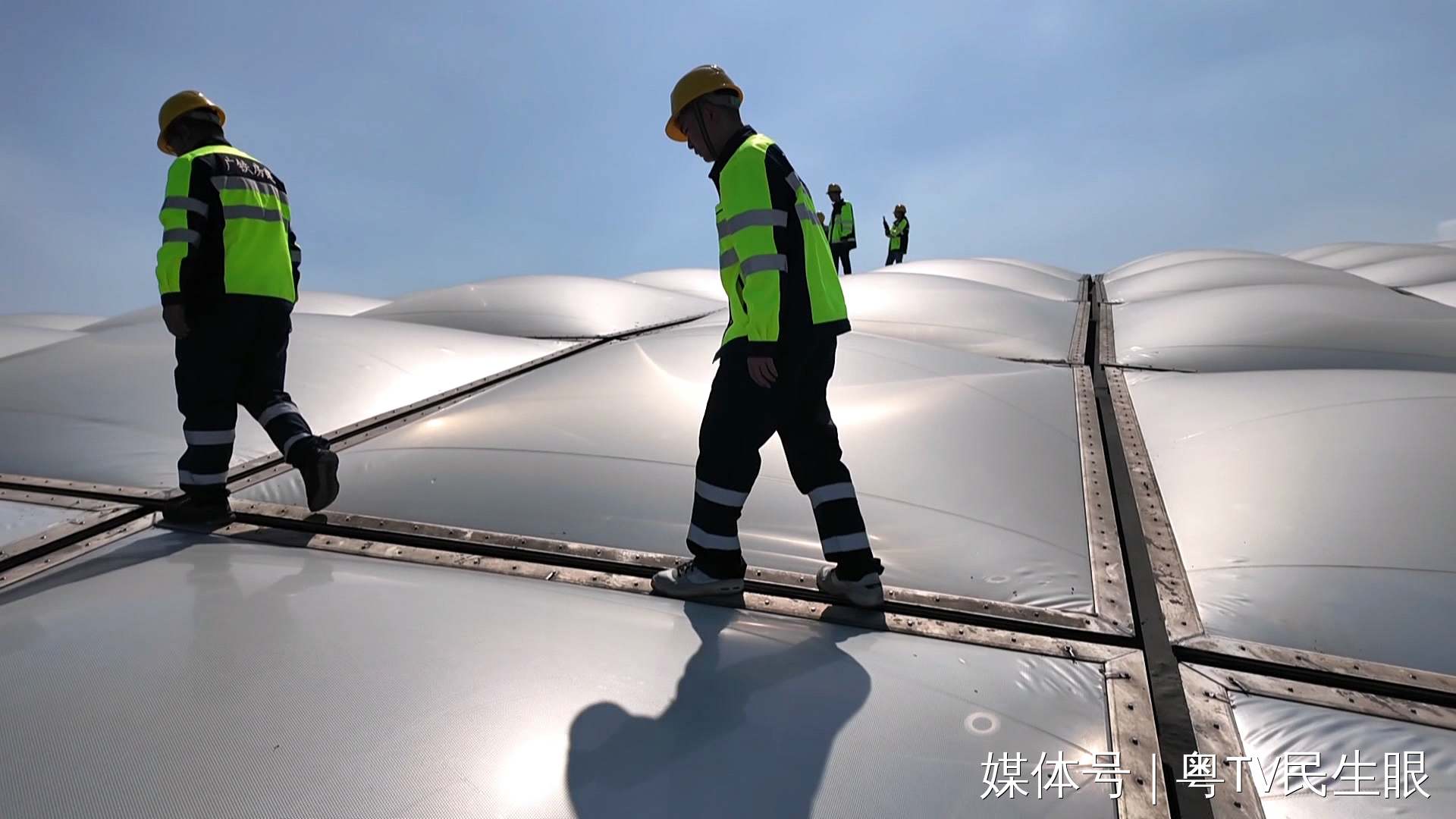 屋面上的最高點距離地面52米,最低點47米,有些地方踩下去,甚至是軟的,人很容易重心不穩(wěn),黃榮彬說,2024年剛來到廣州南站時,相比于害怕高空作業(yè),更多的是好奇。他說剛上到屋面時,只感受到一個字——美!充氣膜在陽光的照射下,感覺就像一朵棉花一樣。