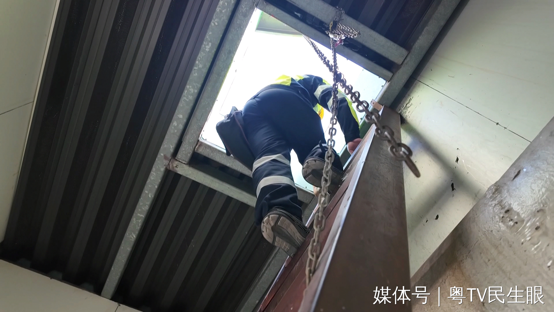 黃榮彬他們這次上來要修整老化的玻璃膠條。