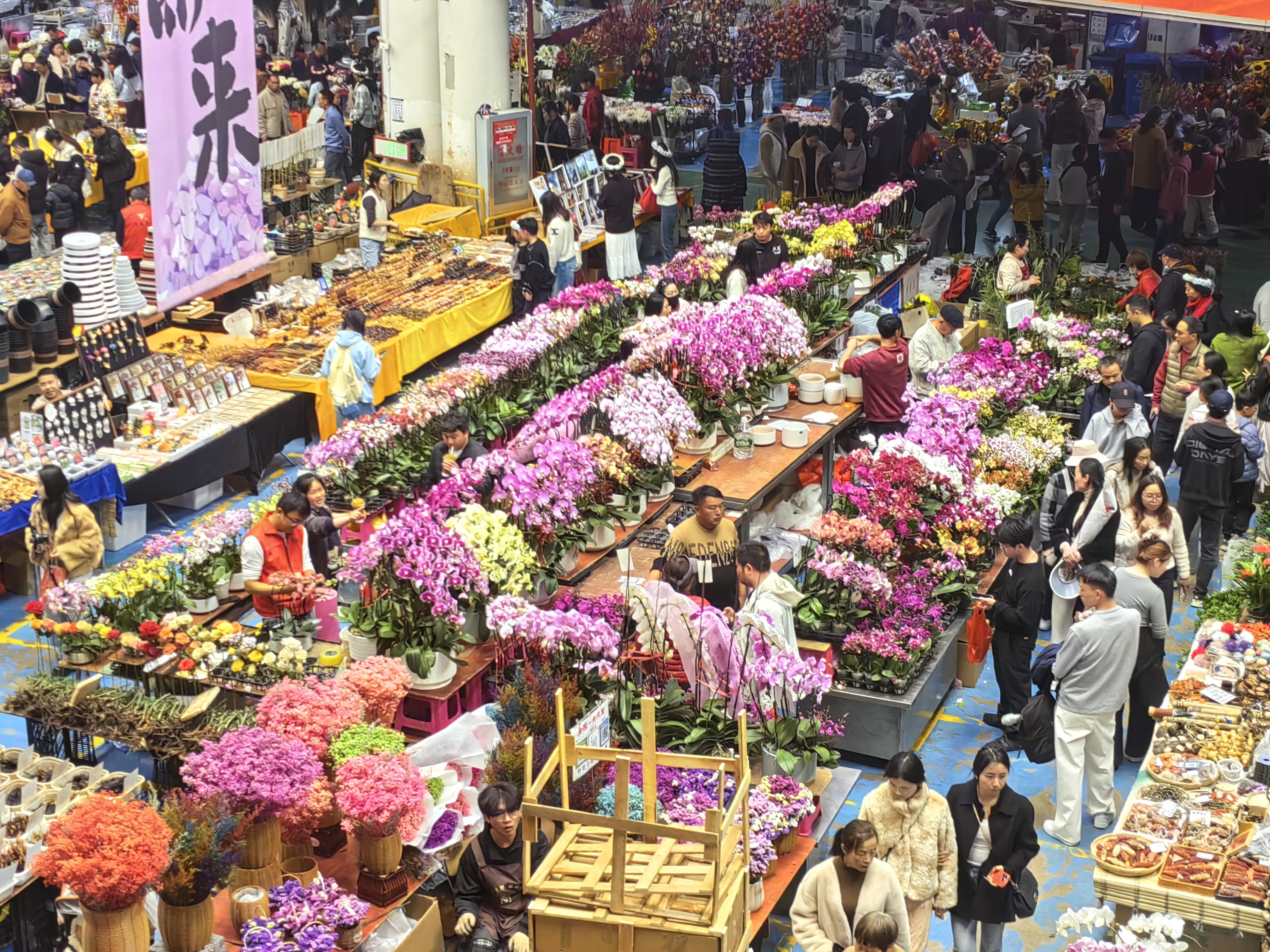 新春花香引客流。春節(jié)期間,在昆明地鐵金桂街·斗南花市站內(nèi),手持鮮花的市民絡(luò)繹不絕,花香與年味相融,讓人們的腳步更添輕快。