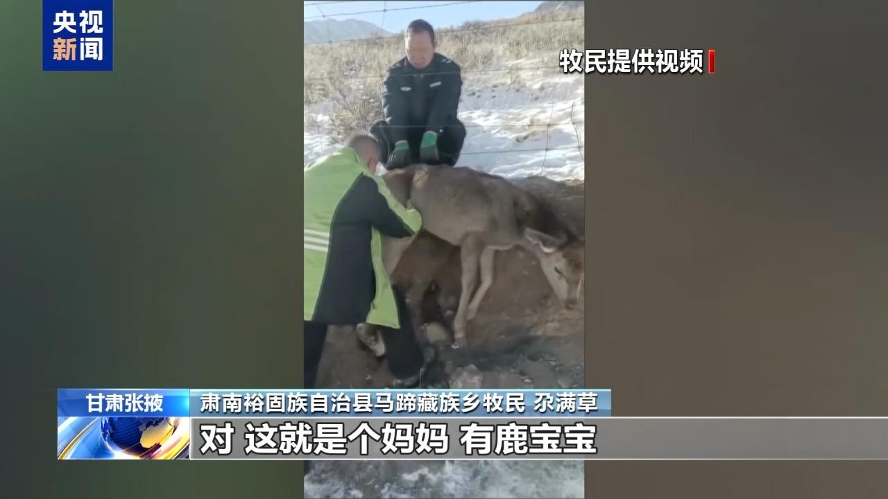 肅南裕固族自治縣馬蹄藏族鄉(xiāng)牧民 尕滿草:祁連山不光是我們的家,它也是野生動物們的家。因為保護得好,現(xiàn)在我們下山借牧了,它們繁殖得越來越多,它們要從樹林里山上下來找吃的,經(jīng)常翻越圍欄的時候別在那兒了。這是鹿,圍欄已經(jīng)勒到它肚子上了。這個是媽媽,有鹿寶寶,它們萬一受傷了,沒人看,天這么冷,它們就會被凍死餓死。隔三岔五我們會上來看一下。