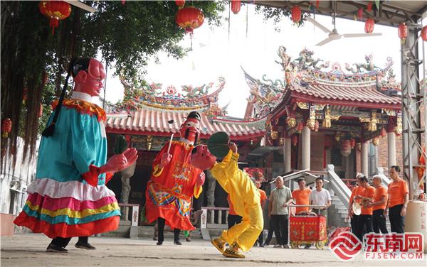 浦南古儺參加廟會(huì)表演。李斌 供圖 漳州市薌城區(qū)流傳著一種古老的儺舞形式——浦南古儺,又稱“大神尪”。據(jù)民間傳說,浦南古儺始于唐朝末年,最早是當(dāng)?shù)鼐用裼褓悤?huì)、驅(qū)逐疫鬼的一種儀式,后來逐漸增加了迎祥祈福、酬神納吉的功能,演變?yōu)閭鹘y(tǒng)的民俗活動(dòng)。在逢年過節(jié)、重大慶典或民間活動(dòng)中,都可以看到“大神尪”的表演。2011年5月,浦南古儺入選第三批國家級非物質(zhì)文化遺產(chǎn)擴(kuò)展項(xiàng)目名錄。 浦南鎮(zhèn)現(xiàn)有兩尊“大神尪”:一尊是七品縣官形象,另一尊是書童形象?!按笊駥丁钡闹谱魇且灾駰l為材料編成鼓形竹筐,外罩繡有精美圖案的服飾。表演時(shí),由舞尪人鉆進(jìn)尪里用肩膀扛起,戴上面具,“縣官”手握“國泰民安”或“風(fēng)調(diào)雨順”的牌子,“書童”舉著扇子,踩著伴奏鑼鼓的節(jié)奏舞蹈,另有一“大頭娃娃”在他倆之間蹦蹦跳跳?!按笊駥丁钡奈璧竸?dòng)作既夸張又滑稽。近年來,學(xué)者研究發(fā)現(xiàn),浦南“大神尪”與臺灣宜蘭地區(qū)的“大神尪仔”的外形、制作方法和表演形式、功能作用基本相同。 我國儺文化中的形象以自然界神靈,鬼怪宗教神仙、神話傳說以及動(dòng)物圖騰為多,浦南“大神尪”卻以“七品縣官”為形象,作為驅(qū)邪逐疫的主角,這在全國儺文化中是極為罕見的。浦南“大神尪”對于研究我國儺文化、閩臺民間信仰淵源傳承關(guān)系極具重要價(jià)值。 |