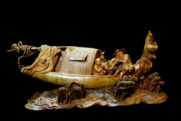 王新明作品《漁翁》 東南網(wǎng)記者章逸琳 攝 竹雕也稱竹刻,是在竹制器物上雕刻多種裝飾圖案和文字,或用竹根雕刻成各種陳設(shè)擺件。竹刻在華夏歷史上由來(lái)已久,早在《禮記·玉藻》中就提到:“士大夫飾竹為笛板,是用竹于典儀且有文飾繪其上。” 選材、鋸胚、蒸煮、脫脂、防腐防蛀、設(shè)計(jì)、描稿、打坯、修光、磨光、仿古、配座......一件真正的竹雕作品,經(jīng)過十幾道工藝才算完成,每件竹雕作品都蘊(yùn)藏著雕刻者對(duì)竹雕藝術(shù)的執(zhí)著和守望,十分講究。 |