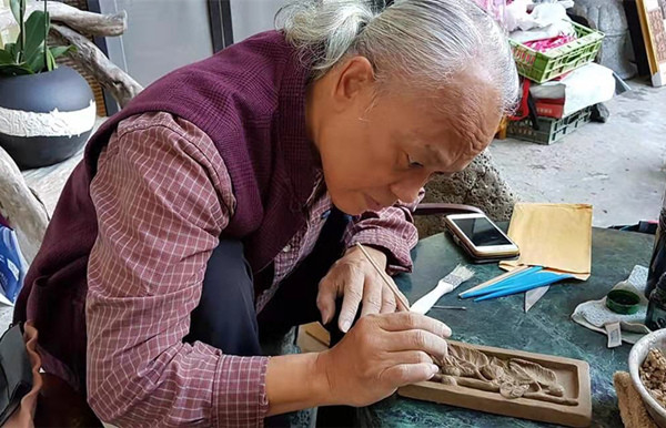 陳逢顯展示他的微雕及磚雕作品。福建日報記者 陳夢婕 攝 除了微雕,陳逢顯孜孜以求的還有用紅土燒磚弄瓦。這次來福州參展,他也帶來了他的磚雕作品,如傳統(tǒng)的硯臺用紅泥燒制而成,其上雕琢有憨態(tài)可掬的動物,讓許多民眾愛不釋手。 1997年,陳逢顯創(chuàng)辦了他的私人博物館毫芒雕刻館,由此開始嘗試磚雕藝術,并在博物館開設磚雕DIY專區(qū)。他說,這樣做最初是為了吸引更多民眾走進博物館,同時也接觸磚雕這門傳統(tǒng)工藝。幾個月的嬰兒,用小腳丫輕輕一按;百歲老人,用手掌一壓。這些對于家人來說,都是最珍貴的紀念。在他的博物館內(nèi),游客可以用磚雕工藝自己制作鎮(zhèn)紙、硯臺、掛飾等。 磚雕藝術在臺灣已經(jīng)有幾百年歷史,但近30年來,陳逢顯明顯感覺這一技藝的式微。于是,他開始致力于把磚雕藝術推廣到基層社區(qū)。新店區(qū)下城里是位于臺灣新北市的一片老城,這里有一條1.5公里的田間小徑,因兩側(cè)用紅磚裝飾有各式壁畫顯得獨具一格。陳逢顯告訴記者,他與下城社區(qū)的400多個居民一起打造了這一座磚雕墻。400多個居民都有自己的想法,他們把它畫出來,然后再由陳逢顯把它以磚雕的形式設計出來。走過這條磚雕墻,游客可以了解這個社區(qū)有三合院、涂潭山,還有美麗的荷花池……他把這里的風土人情“鑲嵌”在墻壁上。 磚雕墻不但美化了社區(qū),還帶熱了觀光業(yè)。讓人感動的是,有的老人已經(jīng)過世了,但是他的子女常常會來這里撫摸他生前的作品以此緬懷;有的小朋友長大了,還會帶自己的朋友來看小時候的作品,或者看看自己兒時的夢想是否實現(xiàn)了…… “泥土全世界都有,在我心里只有祖國的泥土最芬芳?!标惙觑@說,秦風漢韻浸潤在泥土中,跟老祖宗留下來的古老文明一脈相承,“希望幫助每個愛玩泥巴的人,記住中華文化”。 這次來福州,陳逢顯的毫芒雕刻館還與福州市壽山石雕刻藝術研究會簽訂合作協(xié)議,推動微雕文物工法技藝和壽山石雕技藝交流切磋。常年往來于兩岸的他希望能把自己畢生的手藝和文創(chuàng)經(jīng)驗也帶到大陸。(福建日報記者 陳夢婕) |