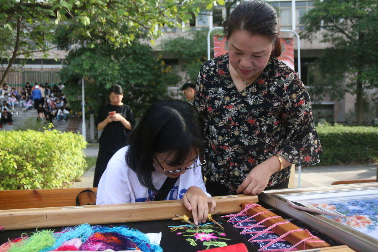 今天的漳繡,早已突破了傳統(tǒng)的相傳模式。通過不懈地堅(jiān)持,陳鐘輝已經(jīng)成功帶出了新的一批徒弟,每周他們都會(huì)積極參與非遺進(jìn)校園活動(dòng),讓學(xué)生們近距離接觸漳繡,他的徒弟們也打破了傳統(tǒng)慣例,敞開大門廣招學(xué)徒,甚至到漳州市屬高校招收學(xué)生,傳授漳州刺繡技藝。