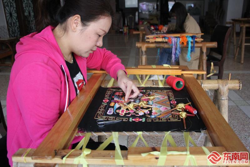 繡工們正專心致志地做著手里的作品。東南網(wǎng)記者 林永清 攝