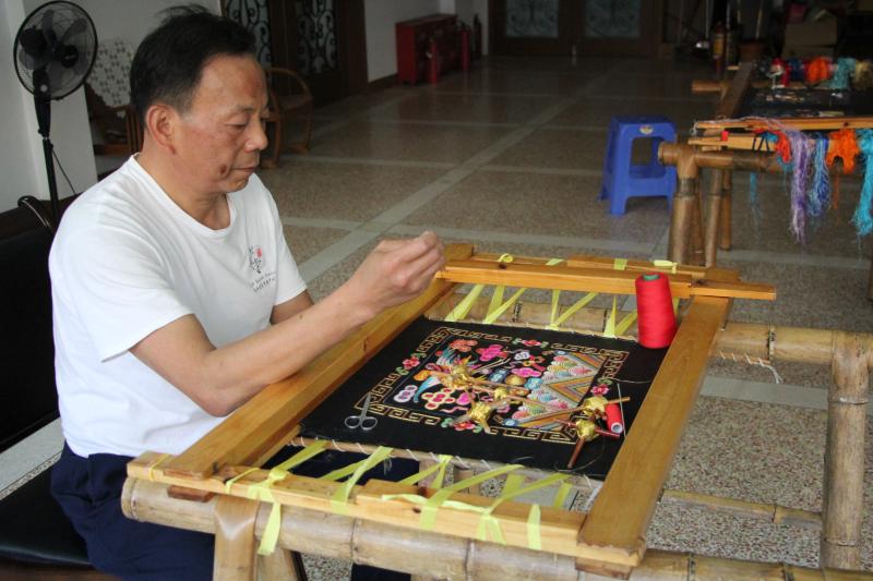 陳鐘輝不時(shí)地自己繡上幾針。東南網(wǎng)記者 林永清 攝