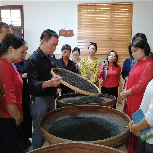 林鴻(左二)現(xiàn)場(chǎng)與研學(xué)學(xué)員交流制茶經(jīng)驗(yàn)。福安茶業(yè)協(xié)會(huì)供圖 如今,在坦洋工夫茶制作技藝福安市級(jí)非遺代表性傳承人中,林鴻也是為數(shù)不多集茶葉制作加工工藝、審評(píng)、茶園管理領(lǐng)域有獨(dú)到見解的傳承人之一。 今年61歲的林鴻,從事茶葉技術(shù)工作38年,熟悉掌握坦洋工夫初、精制及審評(píng)與檢驗(yàn)等技術(shù)。在茶葉技術(shù)推廣應(yīng)用、坦洋工夫茶技藝傳承與推廣等方面作出一定貢獻(xiàn),參與制定、編寫《地理標(biāo)志產(chǎn)品-坦洋工夫》國家標(biāo)準(zhǔn)、《坦洋工夫綜合標(biāo)準(zhǔn)》地方標(biāo)準(zhǔn),編寫《坦洋工夫制作技術(shù)》、《福安市茶葉標(biāo)準(zhǔn)化生產(chǎn)手冊(cè)》等標(biāo)準(zhǔn)及實(shí)用宣傳培訓(xùn)教材。 “我認(rèn)為茶人應(yīng)該遵守一個(gè)原則,上一代人傳下來的,就是學(xué)做茶首先要學(xué)會(huì)做人。端端正正做人,按現(xiàn)在的來說就是要講誠信,在質(zhì)量上要有保證,做事情不可以跳躍性的,要一步一個(gè)腳印,把茶葉做好,把工夫傳下來的?!碧峒疤寡蠊し虿璧闹谱骷妓嚺c傳承,不善于言表的林鴻敞開了心扉。 坦洋工夫原料是“坦洋菜茶”,芽梢肥壯或短小,有茸毛,制成紅茶具味高香濃的特質(zhì)。坦洋工夫傳統(tǒng)制作工藝具有復(fù)雜性、獨(dú)創(chuàng)性和科學(xué)性特點(diǎn)。其中復(fù)雜性從小種紅茶發(fā)展到工夫紅茶,其制作技藝有了很大的變化,在萎凋過程中利用日光復(fù)式萎凋大大提升了萎凋效率,從而避免了煙熏而帶來的健康風(fēng)險(xiǎn)。由鮮葉到紅茶,經(jīng)十幾道工序,繁復(fù)而有序。獨(dú)創(chuàng)性即紅毛茶經(jīng)過繁雜的篩分,分成若干檔茶,最后拼和在一起,工藝復(fù)雜、繁瑣,花費(fèi)制造人工很大,故而稱“工夫”??茖W(xué)性則以獨(dú)特的精制工序,經(jīng)過不斷的傳承發(fā)展的初制加工到精制篩分形成以“抖、分、撈、選、簸、漂”六大核心的十幾道制作工藝和制作手法,具有外形條索緊細(xì)勻直,色澤烏黑潤(rùn)有光澤,湯色紅亮帶金圈,香氣鮮淳,滋味醇厚鮮爽,具特殊“桂圓香”以及葉底紅亮軟嫩等特有的品質(zhì)特征。 “每道工序皆有訣竅,雖然現(xiàn)代部分工序使用模擬人工方式讓機(jī)器代替人工操作,不過傳統(tǒng)制茶工藝仍有許多工序機(jī)械無法替代?!绷著櫿J(rèn)為坦洋工夫百年傳承下來,都是一代代老師傅“一步一個(gè)腳印傳幫帶“,這一門手藝跳躍不了,也不能丟。制茶工藝必須實(shí)時(shí)操作,哪怕你一兩年沒參與做茶,就會(huì)落后很多。 傳承老工藝 任重且道遠(yuǎn)