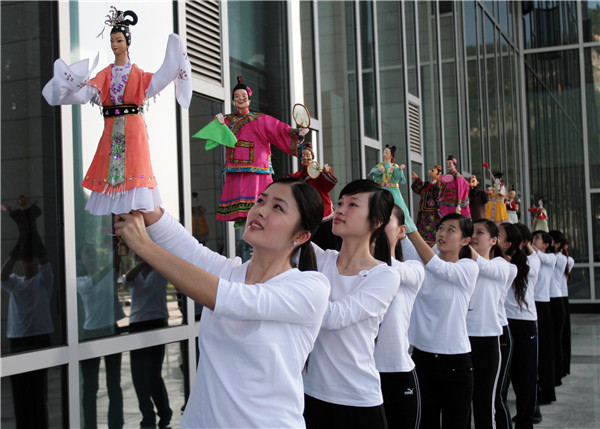 蔡美娜赴摩洛哥參加第十八屆世界中學(xué)生運動會接旗儀式演出。受訪者供圖 2018年5月,2020年世界中學(xué)生運動會的接旗儀式在摩洛哥舉行,晉江市在接旗儀式上帶來了四分鐘的表演。在這過程中,蔡美娜與劇團同事操控著掌中木偶,舞動一條長綢,向世界各地的觀眾展示一場精彩的演出。今年7月,外交部福建全球推介活動現(xiàn)場互動交流中,蔡美娜帶著晉江掌中木偶驚艷亮相。11月18日,福建省經(jīng)貿(mào)和文化旅游推介會在法國巴黎舉行,在本次推介會上,蔡美娜以一場精彩的掌中木偶戲贏得了現(xiàn)場觀眾熱烈的掌聲。“近幾年,晉江掌中木偶戲漸漸走出國門,讓世界更多人知道并喜歡上這份‘偶趣’,這對我們這些傳承人來說是一件欣慰的事情?!?/p> 新人接力技藝再添生機 在傳承與保護上,蔡美娜的觀點是繼承老一輩人執(zhí)著刻苦的精神,并將這項非遺文化在保留精髓的同時又對內(nèi)容與表演形式等進(jìn)行創(chuàng)新。近年來,蔡美娜與劇團工作人員結(jié)合本地文化與時代主流,經(jīng)歷了多年的創(chuàng)作打磨,完成《五里長虹》《清源仙女》等新創(chuàng)劇目。此外,為了貼合簡短的展示性演出,劇團演員也排練出一些片段,通過人與木偶共同站在舞臺上的“人偶合一”表演,讓觀眾可以更直白立體地了解晉江掌中木偶。在今年5月舉辦的晉江文化旅游節(jié)上,晉江市掌中木偶藝術(shù)保護傳承中心與廈門大學(xué)技術(shù)團隊合作開發(fā)的掌中木偶機器人首次亮相,與劇團演員同臺演出,這成為了傳統(tǒng)文化以現(xiàn)代科技形式呈現(xiàn)的一次嘗試。