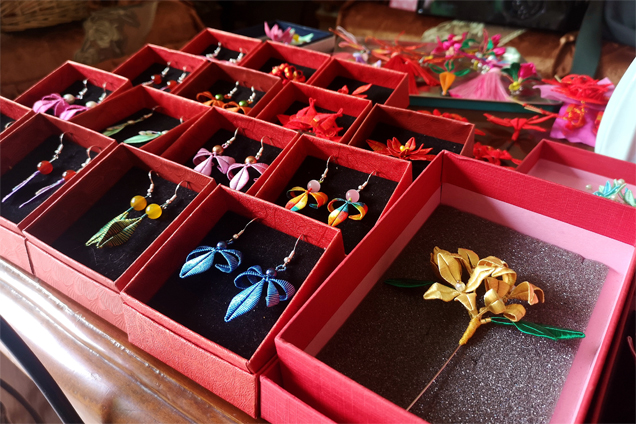 洪曉瑜將越來越多的創(chuàng)意融入春仔花制作。 東南網(wǎng)記者 鄒玒攝 洪曉瑜說,翔安洪厝的春仔花習俗源遠流長,傳承人們都希望能將傳統(tǒng)的東西保留下來,這也是吸引臺灣同胞的關鍵。而臺灣來洪厝的手藝人帶來的文創(chuàng)品也相當成熟,他們對絲線、材料的結合,充分發(fā)揮了優(yōu)勢,同時結合水鉆、珠寶等,提升了附加價值。一次次地交流學習,雙方都帶來了自己的作品,在作品中博采眾長。春仔花原本是簪花,扎在頭上,如今,洪曉瑜還將其制作成耳環(huán)、胸針、插花等文創(chuàng)產(chǎn)品。 在互相學習中,春仔花也跳出了傳統(tǒng)視野,將當下流行的文創(chuàng)理念融匯其中。“現(xiàn)在很多人流行穿漢服,我們還接了很多地區(qū)的漢服配飾訂單,可以根據(jù)服飾顏色與需求,定制一整套頭飾,還有其他小首飾?!蹦壳埃闀澡ひ步右恍┯喼朴唵?,很多顧客會提供自己喜歡的樣式過來,“我們要將春仔花繼續(xù)傳承下去,不斷吸納新鮮的理念,豐富它的內涵,讓它走得更遠?!保ū揪W(wǎng)記者 鄒玒 李奇) |