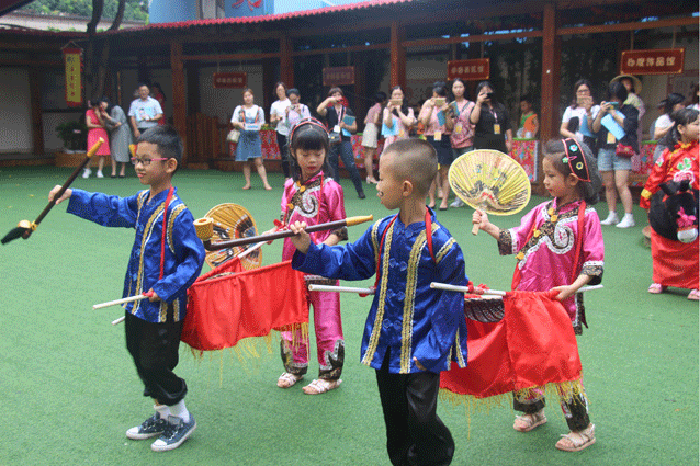 吳潤珠教孩子們表演火鼎公婆。受訪者供圖 泉州的民間信仰氛圍濃厚,民俗活動相應(yīng)較多,以往,火鼎公婆每年都有三四百場表演。近年來,在各地移風(fēng)易俗號召下,民俗活動少了很多,火鼎公婆表演隨之減少。 由于民俗表演藝人的收入不穩(wěn)定,因此,專職從事火鼎公婆表演的人并不多,多數(shù)為業(yè)余表演者。目前,火鼎公婆的表演者主要分布在鯉城區(qū)的農(nóng)村地區(qū)。“當(dāng)時(shí)和我一起學(xué)的一共有十幾個孩子,現(xiàn)在還在做這個的只剩下我一個了?!眳菨欀楦嬖V記者,雖然民俗活動少了,但作為原汁原味的泉州民俗特色表演,火鼎公婆仍受到了當(dāng)?shù)厝罕姷南矏酆驼闹匾暋R恍┥啼侀_業(yè)、大型晚會演出,也常常能看到火鼎公婆的表演。 “我?guī)煾敢彩菑男W(xué)習(xí)這個的,從我?guī)煾傅膸煾改禽吽闫?,僅是我們這一派系也至少傳承百余年了?!眳菨欀閼{借百年傳承體系的“根正苗紅”,成為當(dāng)?shù)鼗鸲艑W(xué)習(xí)拜師的不二人選。許多閑坐在家的農(nóng)村中年婦女紛紛向她學(xué)習(xí)扮演“火鼎婆”,吳潤珠的丈夫在工作之余也會向她學(xué)習(xí)“火鼎公”表演,并經(jīng)常參加當(dāng)?shù)夭冉只顒?,日積月累,也成了半個“專業(yè)人士”。2016年,吳潤珠夫婦就受邀參加春晚泉州分會場的表演,成了一對真正的火鼎公婆。