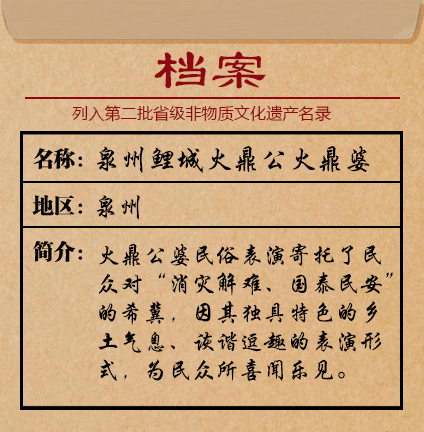 在閩南一帶,火鼎公婆這一民俗表演,因其獨(dú)具特色的鄉(xiāng)土氣息、詼諧逗趣的表演形式、神秘的民間信仰色彩,為民眾所喜聞樂見,根植于泉州草根文化血液中,歷經(jīng)數(shù)百年傳承而不衰。