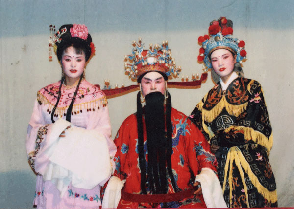 虞東生和徒弟合影。受訪者供圖 “之所以叫做三角戲,是因?yàn)樵戎挥猩?、旦、丑三個(gè)角色?!庇輺|生一邊搬出他的“寶貝”,一邊和記者解釋道:“它是由花鼓戲、黃梅戲、采茶戲、邵武民歌融匯演變而成,講的是老百姓的日常生活,主角們都是農(nóng)民、小商販、土財(cái)主之類,很受老百姓喜歡?!背錾?944年的虞東生,自小就與戲結(jié)緣,介紹起三角戲來,更是如數(shù)家珍。 虞老說,他從小就是個(gè)“戲迷”,常常在戲臺(tái)旁邊看邊模仿?!?0歲時(shí),我整天泡在村里的戲團(tuán)學(xué)戲?!庇輺|生回憶,“雖然年齡小,但是我記性好,學(xué)唱腔、動(dòng)作、樂器都比大人快。跟黃師傅學(xué)習(xí)1年后,我就能在排戲缺人的時(shí)候頂戲,有時(shí)候還教大人表演?!?/p> 1960年的一個(gè)晚上,虞東生到城里觀看越劇后,詢問越團(tuán)負(fù)責(zé)人是否收人,得到的回答是“只要女的,不要男的”,難過和失落涌上心頭。當(dāng)時(shí),他便抱定決心一定要進(jìn)劇團(tuán)。 “沒過多久,我又找到三角劇團(tuán)團(tuán)長黃敏杰。他說進(jìn)劇團(tuán)要考,我學(xué)過戲當(dāng)然不怕考試!”下半年,虞東生便抱著父親買的二胡進(jìn)了邵武縣三角劇團(tuán)。 進(jìn)劇團(tuán)后,虞東生追隨羅雪官、付子卿、周老三等師父學(xué)習(xí)三角戲,以扮演老生為主,也客串些其他角色。由于對樂器的偏愛,他利用業(yè)余時(shí)間向樂師學(xué)二胡、笛子、鑼、鈸、嗩吶等;每到一個(gè)地方演出,他還會(huì)向當(dāng)?shù)乩先嘶蚯拜呎埥虘蛩嚭颓V,并把所學(xué)的樂譜都記下來。 獨(dú)奏一場戲 練“絕活”一心多用