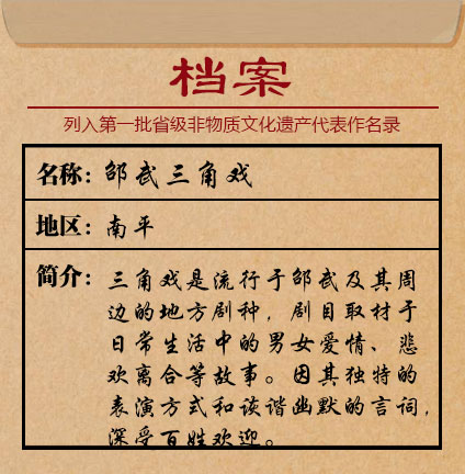 三角戲從產(chǎn)生伊始迄今有400余年,是由花鼓戲、黃梅戲、采茶戲、邵武民歌融匯演變而成的地方劇種。