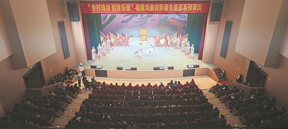洋下村文化藝術(shù)中心的硬件條件不輸城市劇場。 本報記者 郭斌 攝 “南師奔塞北,粉黛英姿膽氣豪;兵鋒指幽燕,掃穴雷霆奏凱歌?!?日晚,福州市長樂區(qū)古槐鎮(zhèn)洋下村,村里的文化藝術(shù)中心座無虛席,連走廊都擠滿村民。福建省實驗閩劇院在這里火爆開演傳統(tǒng)經(jīng)典閩劇《大破天門陣》,引來全場觀眾陣陣喝彩。 當(dāng)晚,由省委宣傳部指導(dǎo)、省文旅廳主辦的“鄉(xiāng)村戲臺 百姓樂園”福建戲曲迎新春走基層系列演出在全省各地同步啟動。鄉(xiāng)村戲臺,鑼鼓激越,臺上演員演得投入,臺下村民看得入迷。 “省實驗閩劇院作為全國地方戲創(chuàng)作演出重點院團和省屬院團里唯一的地方戲院團,每到節(jié)假日,都是我們演職人員最忙碌的時候?!笔嶒為}劇院院長、全國人大代表、文華表演獎和梅花獎得主周虹告訴記者,雖然不能與家人團聚,但能為基層老百姓送上文化大餐,看到他們的笑臉,聽到他們的掌聲,感受到他們的歡樂,“我們的一切辛苦都值得,都開心”。 結(jié)束洋下村的演出,演職人員共同拆臺裝車,4輛貨車、1輛大巴、1輛中巴駛回省實驗閩劇院已是凌晨。2日他們又趕赴長樂區(qū)鶴上鎮(zhèn)下余村,為當(dāng)?shù)卮迕駧ソ?jīng)典保留大戲《梅玉配》。 不只在長樂區(qū),元旦當(dāng)天,福州閩劇藝術(shù)傳承發(fā)展中心在永泰龍巖寺演出國家藝術(shù)基金資助大戲——閩劇《過崖記》,省莆仙戲劇院有限公司在莆田市荔城區(qū)黃石鎮(zhèn)上演《三姓奇緣》,云霄縣潮劇傳承保護(hù)中心在云霄縣下河鄉(xiāng)鳳興村演出潮劇經(jīng)典折子戲?qū)觥?/p> 此次福建戲曲迎新春走基層系列演出,將從元旦延續(xù)到2月24日(農(nóng)歷正月十五)。55天里,我省將發(fā)動組織各類戲曲藝術(shù)表演團體走進(jìn)廣袤田野,為鄉(xiāng)村群眾提供數(shù)量更多、質(zhì)量更優(yōu)的經(jīng)典大戲、新創(chuàng)劇目、新編小戲以及有豐富戲曲元素的綜藝演出,弘揚中華優(yōu)秀傳統(tǒng)文化,培育文明鄉(xiāng)風(fēng),豐富節(jié)日文化產(chǎn)品供給,讓更多農(nóng)民群眾和返鄉(xiāng)探親群體在家門口就能看到鄉(xiāng)村“春晚”大戲,營造歡樂吉祥、溫暖和順的節(jié)日氛圍。同時,以文促旅,以旅彰文,讓戲曲演出成為“兩節(jié)”做熱鄉(xiāng)村旅游、促進(jìn)文旅消費的亮麗風(fēng)景線。 福建現(xiàn)有活態(tài)地方戲曲劇種23個、戲曲院團529家,其中國有院團43家、民營劇團486家。剛剛過去的2023年,全省國有文藝院團進(jìn)鄉(xiāng)村演出超4200場、觀演人數(shù)超200萬人次,相比2022年增幅明顯。 “當(dāng)前,我省許多鄉(xiāng)村對戲曲演出的需求十分旺盛,閩劇、高甲戲、歌仔戲(薌?。⑵蜗蓱?、潮劇等劇種‘兩節(jié)’期間在農(nóng)村市場的演出可以用‘火爆’來形容。”省文旅廳相關(guān)負(fù)責(zé)人告訴記者,今年全省地方劇種公益性演出專項經(jīng)費將繼續(xù)投入超過1850萬元,支持54家地市國有文藝院團以及部分優(yōu)秀民營院團開展不少于2600場惠民演出。同時,繼2023年推動各地試點建設(shè)提升200多個鄉(xiāng)村戲臺之后,今年將再支持建設(shè)40多個鄉(xiāng)村戲臺,因地制宜建設(shè)一批接地氣、有特色、見實效的鄉(xiāng)村戲臺,推動鄉(xiāng)村優(yōu)秀傳統(tǒng)文化的活化利用和創(chuàng)新發(fā)展。(本報記者 郭斌) |