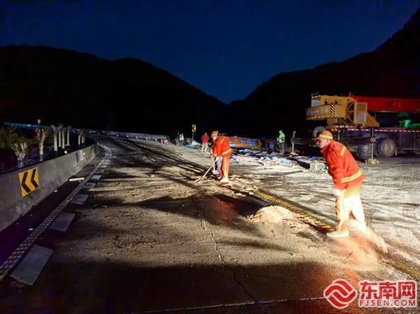 播撒木屑處理撒落油污。 東南網(wǎng)4月15日訊(通訊員俞宏斌 吳澤平)4月13日晚7點許,省道S221線中沙鄉(xiāng)沙坪路段(k69+100)長坡路段發(fā)生車輛側(cè)翻。一輛運載鋼材拖掛車側(cè)翻在路上,鋼材撒落,車輛受損,駕駛員受傷被困。 接中沙派出所險情通報后,寧化公路分中心河龍公路站立馬召集4名值守人員前往事故現(xiàn)場協(xié)同搶險救援。夜間,長下坡、彎道三重風險疊加,為避免次生事故的發(fā)生,他們借助應(yīng)急照明先行用錐形警示標志在事發(fā)路段做好安全布控,同時向“96330”公路服務(wù)熱線報送路況通堵信息。 并協(xié)同公安、交警做好施救工作,播撒木屑,清理路面撒漏油污,清掃路面,有條不紊地消除二次隱患,直到14日凌晨1點15分,道路恢復暢通。 |