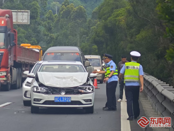 事故現(xiàn)場(chǎng)。寧德高速行政執(zhí)法支隊(duì)供圖 事故發(fā)生后,大隊(duì)立即啟動(dòng)聯(lián)勤預(yù)案,聯(lián)合高速交警、路勤中心趕赴現(xiàn)場(chǎng)。執(zhí)法人員迅速在事故后方布設(shè)警示標(biāo)志,通過(guò)擴(kuò)音器引導(dǎo)后方車輛減速避讓,并協(xié)同交警對(duì)現(xiàn)場(chǎng)實(shí)施臨時(shí)交通管制,有效防止二次事故發(fā)生。經(jīng)勘查,事故系車流密集路段車輛跟車距離不足所致,未造成人員傷亡。在多部門(mén)協(xié)同下,事故車輛被快速拖離至就近的福安下白石出口進(jìn)行后續(xù)處理,10分鐘內(nèi)路面通行秩序全面恢復(fù)。