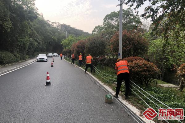 養(yǎng)護工人為道路臨邊側安裝纜索防撞護欄(廈門公路中心供圖) 東南網(wǎng)5月14日訊(本網(wǎng)記者 劉瑋 通訊員 陳志勇)近日,廈門文曾路花溪段交安設施完善項目順利完工,為這條兼具交通與休閑旅游功能的生態(tài)公路筑牢了安全防線。 據(jù)悉,文曾路山嶺路段因早期項目建設定位及地形條件限制,存在諸多“短板”,如局部路段道路縱坡較大、道路寬度受限、人行道未全線貫通等。近年來,廈門交通公路部門通過多種項目形式陸續(xù)進行優(yōu)化改造,消除了不少安全隱患。