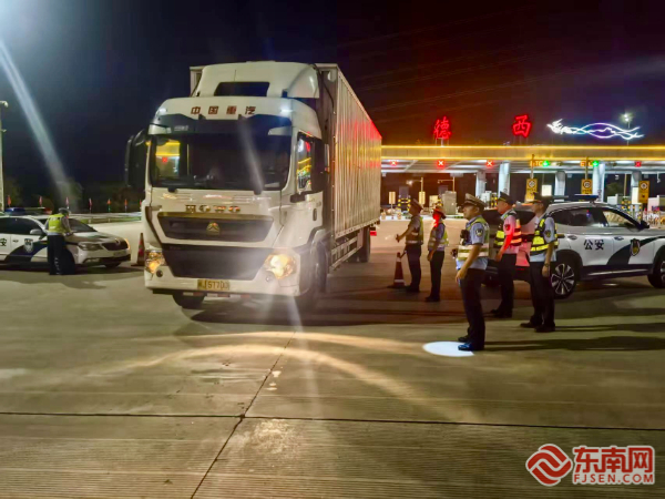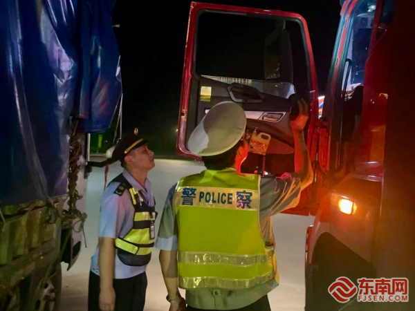 執(zhí)法人員對過往大型貨運車輛進行嚴格篩查。寧德高速執(zhí)法支隊供圖 在嚴格執(zhí)法同時,行動融入人性化服務(wù)理念。執(zhí)法人員現(xiàn)場發(fā)放安全宣傳資料,耐心講解超限超載危害及法規(guī)政策,引導(dǎo)駕駛員提升安全守法意識。為緩解司機疲勞,執(zhí)法點設(shè)置簡易“便民服務(wù)點”,提供熱水和應(yīng)急藥品,并優(yōu)化查驗流程以減少等待時間。檢查中,執(zhí)法人員同步提醒夜間行車安全注意事項,及時督促整改輕微隱患,體現(xiàn)執(zhí)法溫度。
