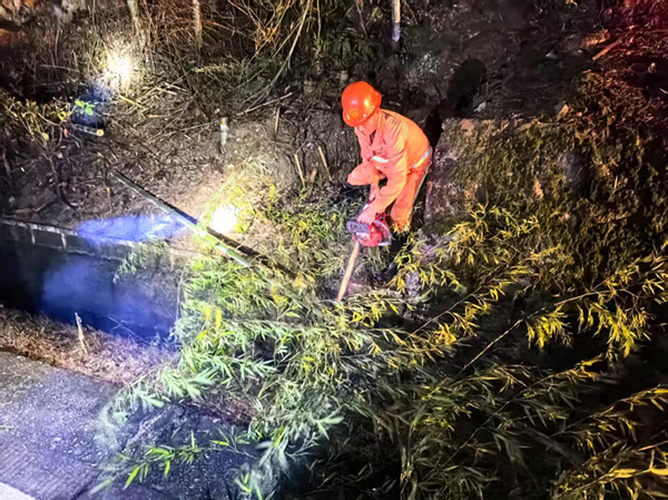 搶險(xiǎn)隊(duì)伍火速集結(jié),前往搶險(xiǎn)。 東南網(wǎng)6月16日訊(通訊員 巫雨玨)臺(tái)風(fēng)6月15日夜,臺(tái)風(fēng)“蝴蝶”裹挾著猛烈風(fēng)雨突襲寧化??耧L(fēng)驟雨之下,寧化縣境內(nèi)國(guó)省干線公路多處路數(shù)倒伏,險(xiǎn)情嚴(yán)重威脅著公路動(dòng)脈的安全暢通。 寧化公路分中心立即啟動(dòng)應(yīng)急機(jī)制,橘紅色的身影聞汛即動(dòng)。搶險(xiǎn)隊(duì)伍頂著傾盆大雨,在濃重夜色中火速集結(jié),前往搶險(xiǎn)。 S221線城郊鎮(zhèn)肩頭嶺路段與中沙鄉(xiāng)圳背村路段,倒伏的竹子如重重路障。養(yǎng)護(hù)工人的汗水與雨水將衣衫浸透,仍揮舞著油鋸,在強(qiáng)風(fēng)驟雨中劈開(kāi)濕滑沉重的竹枝。S221線河龍鄉(xiāng)沙坪村路段,傾倒的大樹(shù)橫亙路中,搶險(xiǎn)隊(duì)員依靠車(chē)輛燈光,奮力切割、拖移樹(shù)干。風(fēng)雨聲、油鋸聲交織,橘紅色的身影在車(chē)燈與頭燈的光束里穿行,成為雨夜中最令人安心的路標(biāo)。搶險(xiǎn)人員徹夜奮戰(zhàn),以最快的速度將倒伏樹(shù)木逐一清除,有力保障了寧化縣國(guó)省道干線的安全。 截止15日晚22時(shí)30分左右,寧化縣國(guó)省道干線已恢復(fù)安全與暢通。當(dāng)臺(tái)風(fēng)撕裂了平靜,正是這抹風(fēng)雨中的橘紅,在險(xiǎn)境中重新鋪就了暢通之路。 |