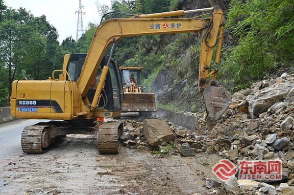 7月21日晚,省道308線沙縣區(qū)長紅村路段發(fā)生山體崩塌,石塊影響道路安全通行。 東南網(wǎng)7月23日訊(通訊員 徐紫瑩)近日,短時(shí)強(qiáng)降雨突襲沙縣區(qū),落石、倒伏樹木占據(jù)多處路面,影響通行安全。三明市公路事業(yè)發(fā)展中心沙縣分中心全體職工晝夜不息,在暴雨與險(xiǎn)情中展開與時(shí)間的競(jìng)速賽。 7月21日傍晚,一陣強(qiáng)降雨剛剛過去,高砂公路站職工在國道205線龍江村路段發(fā)現(xiàn)倒伏樹木,占據(jù)半幅路面。他們披上雨衣、提起油鋸便沖入雨中,不顧大風(fēng)掀起的雨衣和沾滿鋸末的臉頰。經(jīng)過半小時(shí)疾速清理,他們將道路安全隱患清除。 當(dāng)晚9時(shí)許,在省道308線長紅村路段,隨著一聲巨響——約300m3土石轟然傾瀉,石塊攔住了過往群眾的通行道路,現(xiàn)場(chǎng)車隊(duì)排起長龍。大洛公路站站長林新清到達(dá)現(xiàn)場(chǎng)后,安排專人觀察邊坡穩(wěn)定情況,并組織人員對(duì)現(xiàn)場(chǎng)進(jìn)行安全布控。鏟車就位后立即開展清理落石工作,在各方配合下,近兩小時(shí)緊張作業(yè)后,該路段恢復(fù)通行狀態(tài)。