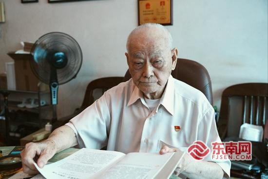 李祖景至今保留著閱讀的習(xí)慣。 東南網(wǎng)記者 杜志鑫 攝 從戰(zhàn)線到書業(yè):以篤行續(xù)紅色初心 1945年8月15日,日本宣布無條件投降,抗日戰(zhàn)爭迎來正義勝利,但李祖景的步伐并沒有就此停下,他積極發(fā)展一批批革命群眾,投身泉州中心縣委開展的多項革命工作。李祖景既以交通員身份為潛伏戰(zhàn)友送情報、傳敵情,又隨部隊進軍解放官橋,并配合參與安海、水頭的解放戰(zhàn)爭。 1949年10月,晉江地委組織部將李祖景派去參與籌建泉州新華書店。彼時泉州剛解放,廣大群眾渴求了解革命思想,黨也亟需通過書刊傳播馬列主義、毛澤東思想與黨的方針政策。他與另外8名籌建人員晝夜不休,修繕布置書店門市部,并請回印刷技工和排版師傅,陸續(xù)發(fā)行了《共產(chǎn)黨宣言》《中國革命和中國共產(chǎn)黨》等革命圖書。這些書籍很快供不應(yīng)求,大家受到新鮮深刻的革命教育。 “社會風(fēng)氣煥然一新,日子慢慢變好,大家對生活也更有信心了,這就是書籍的力量?!被貞浧甬?dāng)時的場景,李祖景仍難掩激動。1950年5月起,李祖景受命籌建石獅、安海、青陽新華書店,此后數(shù)十年,他將半生心血投入這一事業(yè)。熱愛讀書的他始終踐行“活到老、學(xué)到老”,家里床頭、書桌、櫥架等地常年放滿了書籍,即使到了96歲,他還保持著每日閱讀的習(xí)慣。李祖景好學(xué)不倦、嚴(yán)謹(jǐn)踏實的作風(fēng),也滋養(yǎng)了良好家風(fēng),在鄰里間傳為美談。 如今身處和平盛世,可戰(zhàn)火歲月的苦痛,李祖景始終沒忘,“日本人欺負(fù)我們中國,那個罪惡太大了,講也講不完……”談及日軍對百姓的殘暴傷害,他的聲音一度哽咽?!岸嗌偃藶榱丝箲?zhàn)勝利流血犧牲,為了解放事業(yè)奉獻青春,我們不能忘了他們?!苯甏蟛〕跤?,他便著手整理回憶錄,將一生征程及所作的雜文和詩聯(lián)整理起來,從文字撰寫到校對排版,他都一絲不茍,哪怕行動不便,也堅持逐字逐句核對,最終匯成《歲月痕文集》《辛怡齋詩聯(lián)稿續(xù)集》兩卷書稿出版,這些文字,為泉州抗戰(zhàn)史研究提供了珍貴的一手素材。 “大刀向日本鬼子頭上砍去,全國抗戰(zhàn)的日子來到了,前面勇敢義勇軍,后面有勇敢的老百姓……”采訪接近尾聲,李祖景再次唱起記憶中的抗戰(zhàn)歌曲。微風(fēng)穿過窗臺,拂過書桌上的回憶錄,吹起一頁頁書卷,也將這名老同志的傳奇人生輕輕鋪展。 近日,泉州市領(lǐng)導(dǎo)看望慰問抗戰(zhàn)老戰(zhàn)士老同志代表,其中就有李祖景,當(dāng)一行人為他頒發(fā)“中國人民抗日戰(zhàn)爭勝利80周年”紀(jì)念章,并向他表示敬意時,李祖景緩緩站起身,挺直脊背,立定身體,認(rèn)真地敬了個禮。這個動作穿越八十余載時光,仿若是如今的他,向當(dāng)年那個在街巷里念著童謠的少年,傳去了一份鄭重的回應(yīng)。 |