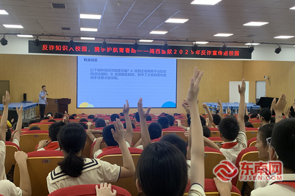 在閩西監(jiān)獄民警進校園開展法治宣傳教育活動中,孩子們踴躍參與其中,積極和民警互動 在龍巖二中,退役軍人、閩西監(jiān)獄六分監(jiān)獄民警陳玉文以“鑄強國魂,立報國志”為主題,為千余名師生作國防教育宣講。他從《中華人民共和國國防法》切入,系統(tǒng)介紹中國武裝力量結(jié)構(gòu)和各軍種職能,更以親身經(jīng)歷的軍旅生活,拉近青少年與大國國防的距離。他從“海上守護戰(zhàn)機起降”到“高墻內(nèi)守護社會底線”的崗位轉(zhuǎn)變,生動詮釋了軍人與警察兩重使命背后的同一份忠誠。 在松濤小學,閩西監(jiān)獄四分監(jiān)區(qū)民警以“平安進校園,安全我護航”為主題,為四年級學生帶來一堂實用的法治安全課。圍繞交通安全、用火用電、食品安全等內(nèi)容,民警通過交通標志競猜、視頻案例剖析等形式,增強學生自我保護意識。結(jié)合未成年人保護相關法律,他們還將“游戲皮膚詐騙”“追星打賞騙局”等熱點問題轉(zhuǎn)化為通俗易懂的案例,引導學生知法守法、遠離陷阱。