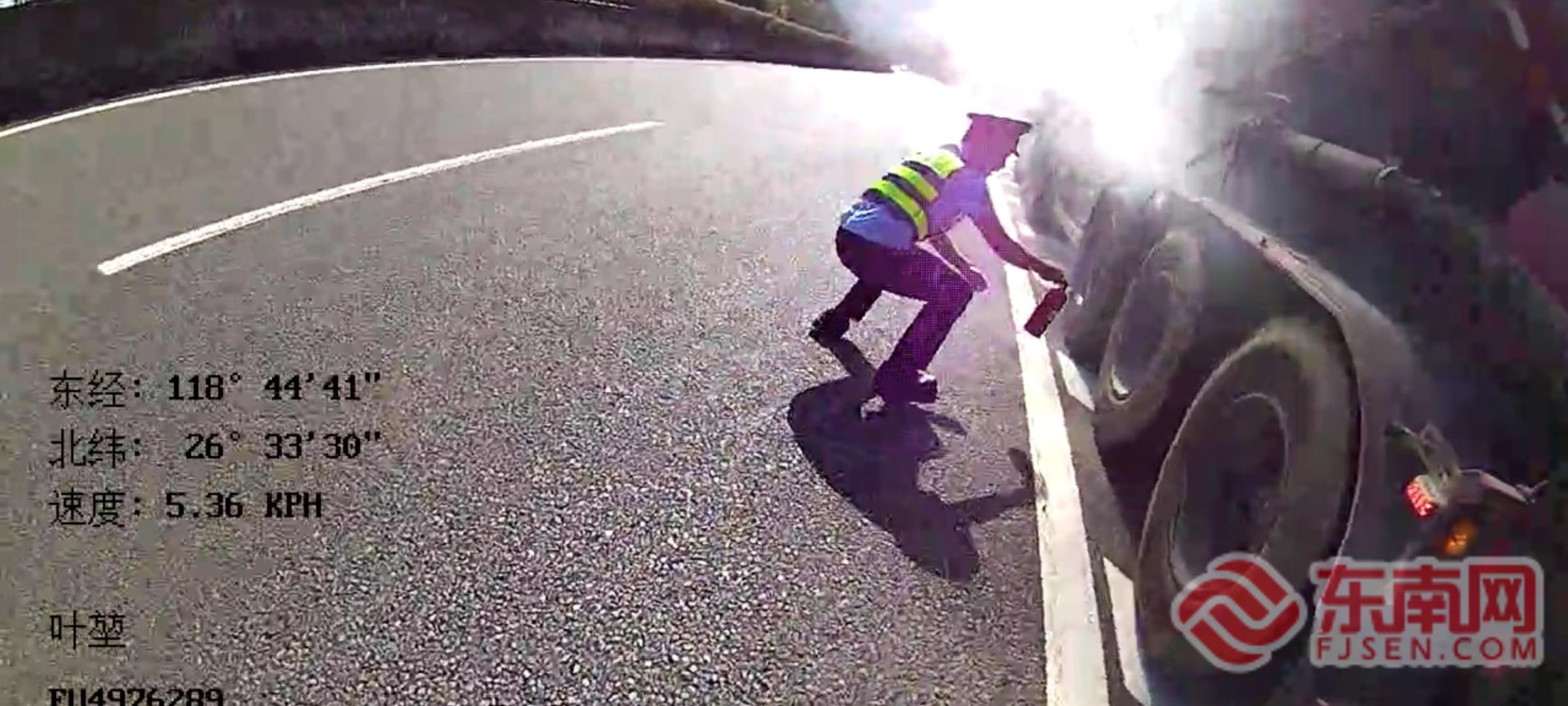 執(zhí)法記錄儀中執(zhí)法員滅火身影 同時,寧德高速執(zhí)法支隊依托“5+N”聯(lián)動機制,第一時間協(xié)調(diào)高速交警、路勤等部門到場,共同完成現(xiàn)場后續(xù)處置。經(jīng)調(diào)查,此次火情起因是貨車司機長時間行駛途經(jīng)長下坡路段,車輛剎車系統(tǒng)故障引發(fā)輪胎抱死起火。 此次處置從發(fā)現(xiàn)火情到控制火勢,全程高效有序,充分展現(xiàn)了寧德高速執(zhí)法隊伍“素質(zhì)過硬、作風(fēng)優(yōu)良”的鐵軍風(fēng)貌。在危急時刻展現(xiàn)了寧德高速執(zhí)法人的擔(dān)當,切實為“雙節(jié)”期間高速公路通行安全筑牢防線。 |