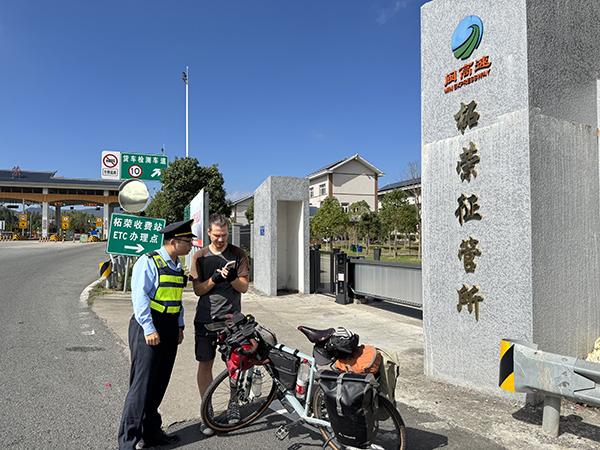 東南網(wǎng)10月27日訊(通訊員 鄭武 呂越)10月25日,寧德高速公路行政執(zhí)法支隊柘榮中隊執(zhí)法人員在柘榮收費站開展例行巡查時,發(fā)現(xiàn)一名外籍騎行游客在收費站入口處徘徊,神情焦慮。執(zhí)法隊員立即上前,通過翻譯軟件耐心與其溝通,了解情況。