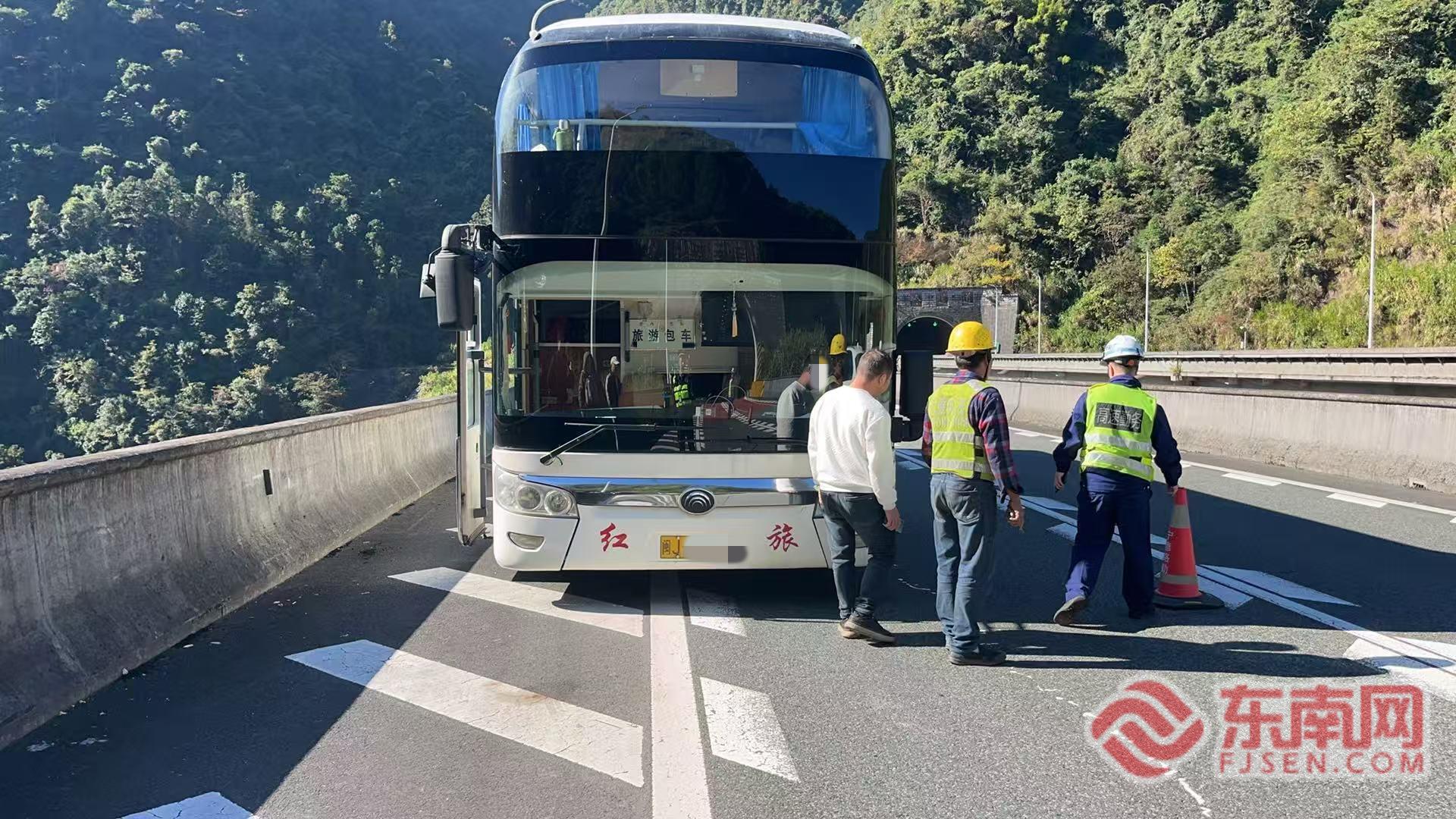 東南網(wǎng)11月17日訊(通訊員 劉順才 蔡孫章)11月14日上午九時許,溧寧高速B道半嶺隧道與白日隧道之間的路段突發(fā)緊急情況:一輛懸掛閩J號牌的旅游包車突發(fā)故障,無法繼續(xù)行駛,車上二十余名乘客瞬間滯留高速路面。該路段地處隧群銜接處,明暗光線頻繁切換易造成視線干擾,加之高速車流不息,滯留人員和故障車輛暴露在行車道旁,稍有不慎便可能引發(fā)連環(huán)碰撞,安全隱患極大。