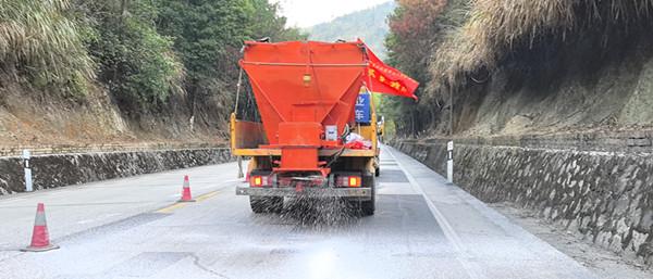 撒融雪劑。 東南網(wǎng)1月7日訊(通訊員 郭鈞 李宇杰 季蓉 文/圖)近日,氣溫驟降,1月6日下午,三元公路分中心組織機(jī)材、工程、路產(chǎn)安全、工會(huì)等部門,在G534線中村石馬岬隧道易結(jié)冰路段,以“實(shí)戰(zhàn)為導(dǎo)向”開展抗冰凍應(yīng)急演練,同步完成易結(jié)冰災(zāi)害點(diǎn)專項(xiàng)檢查,用專業(yè)部署與快速響應(yīng)筑牢冬季公路安全暢通防線。 此次演練模擬石馬岬隧道路段受強(qiáng)降溫影響,路面出現(xiàn)結(jié)冰險(xiǎn)情,影響過往車輛通行安全。上午9時(shí)許,中村公路站巡查人員在日常巡檢中發(fā)現(xiàn)路面結(jié)冰跡象后,立即向分中心報(bào)告現(xiàn)場情況,包括結(jié)冰范圍、路面狀況及交通影響等關(guān)鍵信息。分中心接到報(bào)告后迅速研判,當(dāng)即啟動(dòng)冰凍災(zāi)害應(yīng)急處置預(yù)案,下達(dá)搶險(xiǎn)指令。 接到指令,搶險(xiǎn)隊(duì)伍迅速集結(jié),融雪撒布機(jī)、養(yǎng)護(hù)車輛等立即趕赴現(xiàn)場,各作業(yè)小組分工協(xié)作、高效聯(lián)動(dòng)。公路站職工熟練地布設(shè)錐標(biāo)、立好警示標(biāo)識(shí)、按規(guī)范劃定安全作業(yè)區(qū)域,路產(chǎn)人員引導(dǎo)過往車輛減速慢行。工程技術(shù)人員認(rèn)真勘察“結(jié)冰”路段情況,指導(dǎo)除冰作業(yè)組采用“機(jī)械撒布+人工清掃”相結(jié)合的方式,先通過撒布機(jī)均勻撒布融雪劑,加速冰層消融,再行清掃。整個(gè)演練過程中各部門互相有序配合,從險(xiǎn)情上報(bào)、預(yù)案啟動(dòng)到現(xiàn)場處置、道路恢復(fù),全程銜接順暢,充分展現(xiàn)了搶險(xiǎn)隊(duì)伍在極端天氣下的快速響應(yīng)能力與協(xié)同作戰(zhàn)水平。