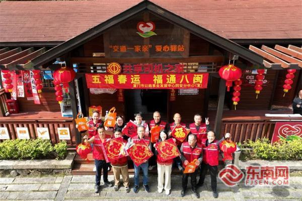 上陵"交通一家親"愛心驛站開展志愿服務(wù)活動(dòng)(廈門公路中心供圖) 東南網(wǎng)2月12日訊(本網(wǎng)記者 劉瑋 通訊員 陳佳妮)2026年春運(yùn)期間,廈門市交通局公路中心同安公路部門緊扣"五福春運(yùn) 福通八閩"主題,在上陵"交通一家親"愛心驛站(共享司機(jī)之家)開展志愿服務(wù)活動(dòng),為返鄉(xiāng)群眾打造充滿年味的暖心歇腳點(diǎn),讓高山返鄉(xiāng)路既有年味兒更有溫度。 省道507東枧線是廈門同安老城區(qū)連接安溪、長(zhǎng)泰的重要通道,也是通往軍營(yíng)村、白交祠村等廈門邊遠(yuǎn)高山村莊的必經(jīng)之路,村莊距同安城區(qū)約35公里,春運(yùn)期間有大量外出務(wù)工人員經(jīng)此返鄉(xiāng)。該山區(qū)公路地勢(shì)復(fù)雜、路途遙遠(yuǎn),便民服務(wù)設(shè)施相對(duì)缺乏,加之天氣寒冷,同安公路部門依托沿線的上陵"交通一家親"愛心驛站設(shè)置便民服務(wù)點(diǎn),組織黨員干部、志愿者開展暖心服務(wù),保障群眾平安返鄉(xiāng)、順利出行。 為讓返鄉(xiāng)群眾感受家的溫暖,同安公路部門為愛心驛站換上專屬"春節(jié)皮膚",打造濃郁新春氛圍。省道507東枧線路道兩側(cè)掛起紅燈籠,驛站小木屋門口紅燈籠次第排列,嶄新的春聯(lián)、喜慶的窗花裝點(diǎn)其間,還有駿馬圖案的背景墻及新春打卡拍照墻,周邊綠樹叢中也錯(cuò)落懸掛著紅燈籠,紅妝映翠林,讓高山上的年味愈發(fā)濃厚,讓驛站從單純的歇腳地變成充滿溫情的"家"。