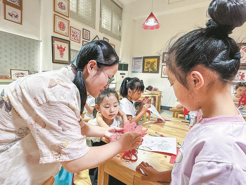 非遺代表性傳承人陳水云指導學生練習剪紙。圖源福建日報