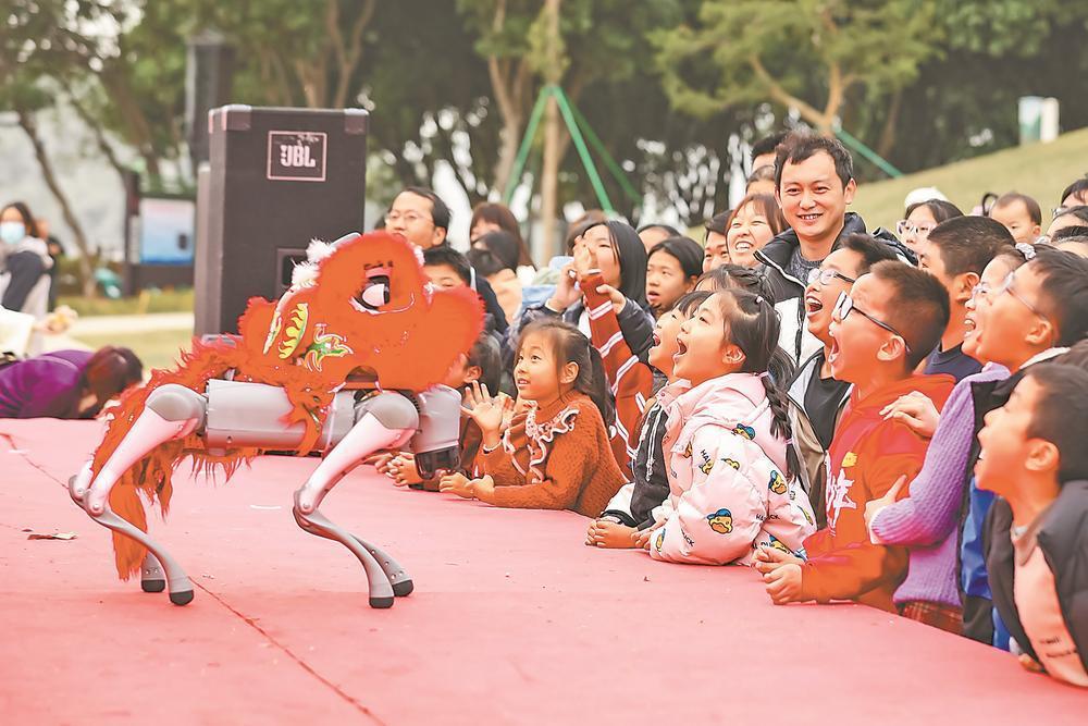 23日,在福清市石竹山風(fēng)景名勝區(qū),游客與智能機(jī)器狗互動(dòng)。謝貴明 攝