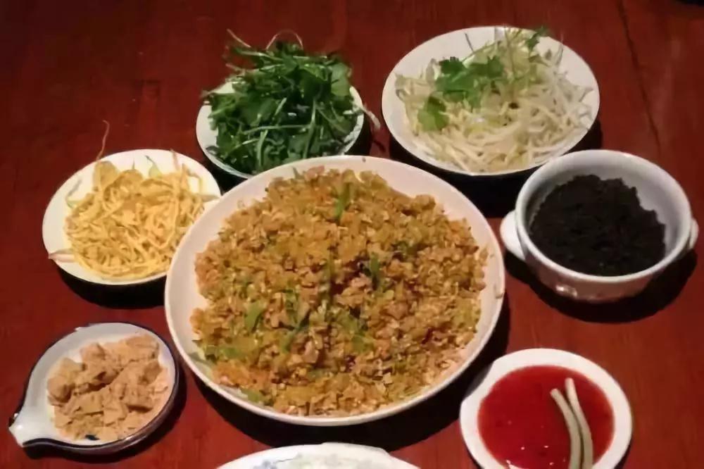 薄餅風(fēng)味獨(dú)特。主要以春卷皮、包菜、胡蘿卜、豬五花肉、凈加力魚肉、蝦仁、豌豆苗、豆干、青蒜、冬筍為食材。