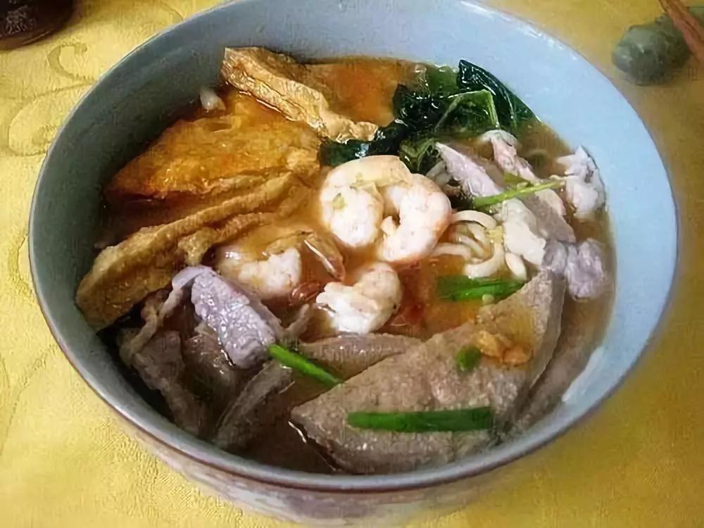 沙茶面→ 沙茶面是廈門的經(jīng)典面食。金黃帶著紅亮的油花,迷醉人的其實(shí)是花生、蝦米、辣椒、沙姜等煸炒熬制出的湯頭,又甜又辣,令人垂涎。
