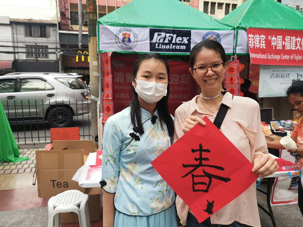 菲律賓友人展示手寫“春”字 菲律賓友人William接受采訪時表示,對疫情后馬尼拉華人區(qū)再次舉辦慶祝春節(jié)活動感到非常開心,他們呼朋引伴、一起前往馬尼拉華人區(qū)參加活動,共同感受中國農歷春節(jié)的歡樂。在這里,他看到了清新福建的展位,對福建茶葉留下深刻印象,期待能到福建旅游,實地感受中國發(fā)展和文化底蘊。 |